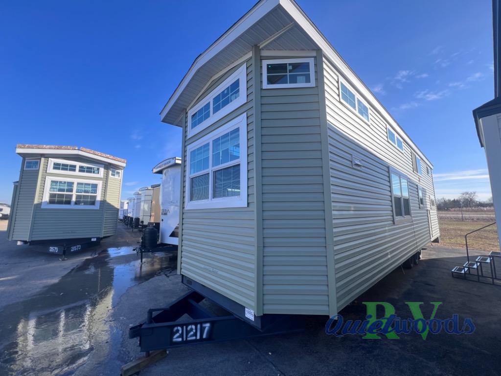 Head out on adventure in this spacious park model. You will love the front kitchen with tons of counter space and a four burner cooktop to prepare meals at. There is an entertainment center where you can add a TV, and the kitchen island will provide more counter space. This model includes a pantry to store dry goods and snacks, a chalkboard the little ones are sure to love, and a space to add an optional washer and dryer if you choose. Don't let this model pass you by!