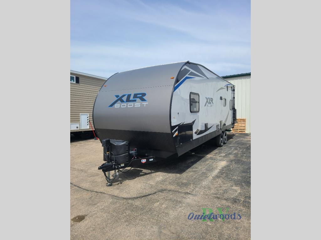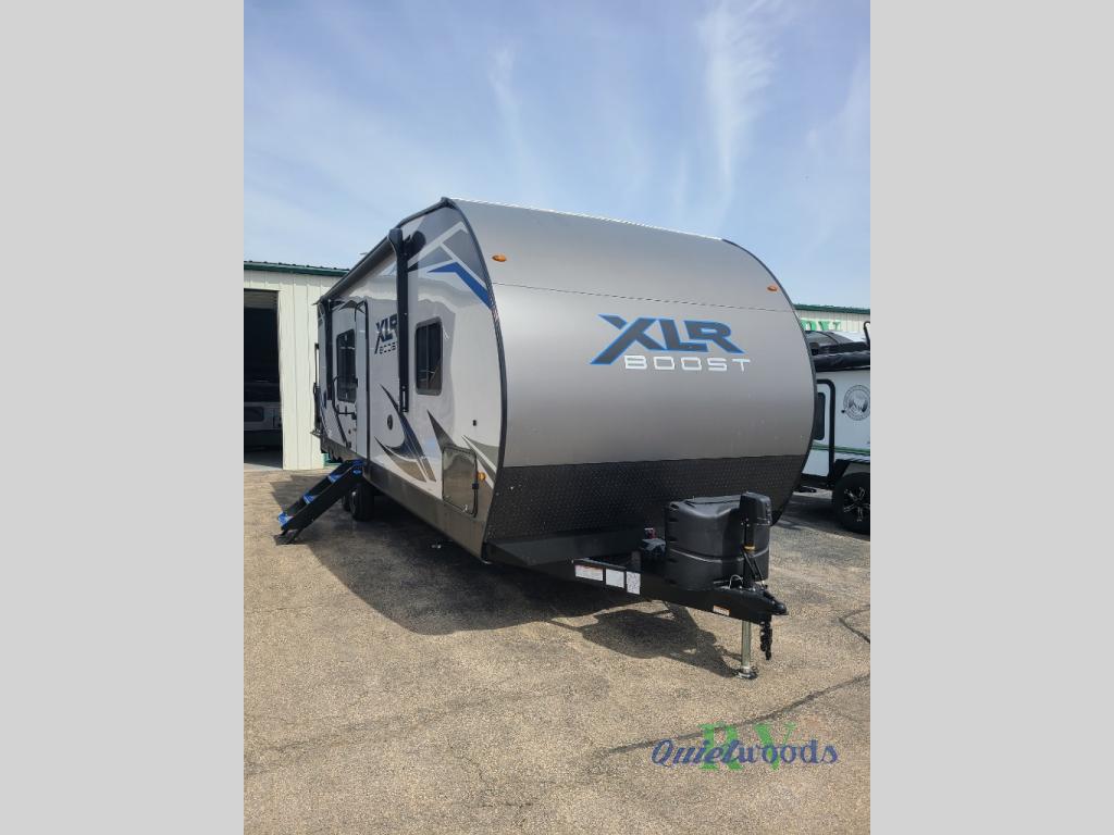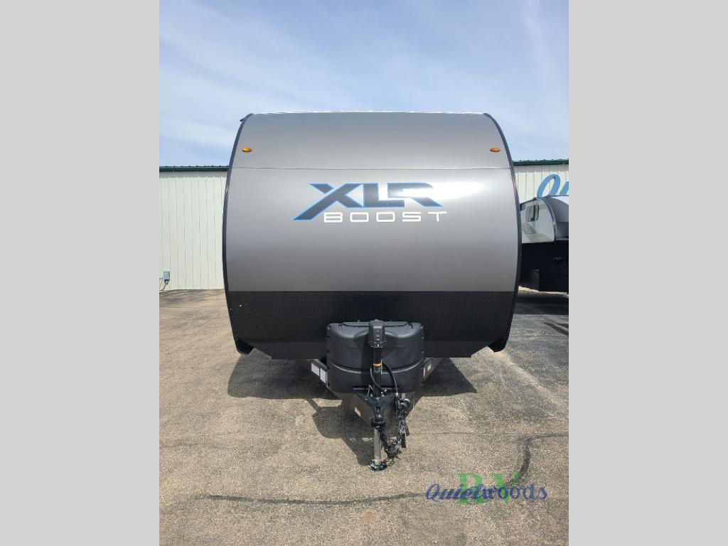 Boost into action camping with one of these Forest River XLR Boost fifth wheel toy haulers or travel trailer toy haulers! The 102" wide body not only provides ample interior space, but also packs in all of the luxurious features to make your trips great. A seamless PVC roof system prevents water from leaking inside, and the moisture barrier floor enclosure and the oil and gas resistant residential linoleum throughout keeps your unit from falling apart. You can easily load and unload your toys with the laminated aluminum framed weather proof ramp door. Keep the dirt outside where it belongs with the outside hot/cold shower box and enjoy the perfect view of your beautiful surroundings even indoors through the large panoramic windows. Come find the model that best fits your needs today!