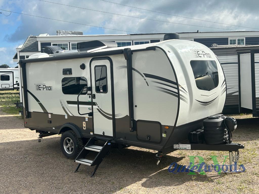 With any Flagstaff E-Pro travel trailer by Forest River, you will experience lightweight towing, style and features that will meet your needs, plus amenities that give you more than you expected! Built with interior and exterior composite sidewall construction, tongue and grove plywood flooring, and a vacuum laminated roof and walls, plus torsion axle, Rubber-Ryde suspension, and a tire pressure monitoring system for safety while traveling. And the 200 watt roof mount solar panel with 1,800-watt inverter will allow you to stay off-grid if you like. The interior offers a comfortable environment with the choice to use the air conditioner or furnace, and a 12V entertainment TV with stereo to stay up to date on your favorite movies. Make your selection today!