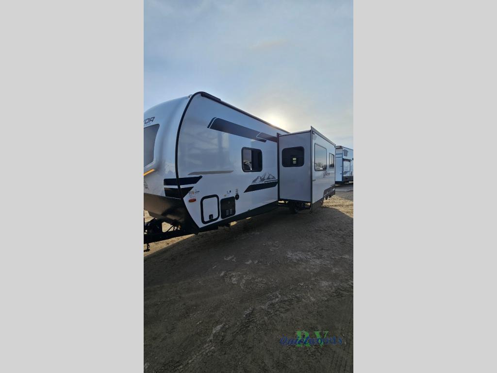 No need to rough it when you camp; this trailer offers amenities that allow you to "Glamp" if you want! The rear spacious bathroom is tucked away behind a beautiful barn door, and inside features a 30" x 36" shower, wardrobe, and linen storage. The front master bedroom offers privacy, a walk-around custom king bed, dual wardrobes and underbed storage, plus TV prep if you want the option to watch movies in bed. The L-shaped counter in the kitchen provides enough space to have everything at your fingertips while you cook, plus there is a countertop extension for more prep and serving space if needed. A nice walk-in pantry just inside the entry door will be perfect for chips and snacks or canned goods for those longer camping trips. If dining inside, the booth dinette with pull-out dinette drawers will be comfortable plus you will enjoy the view provided by the panoramic windows within the slide out. An outside kitchen will be a favorite for anyone that cooks, and the 19' awning will provide some protection from the elements and offering an outdoor living area to enjoy with everyone.