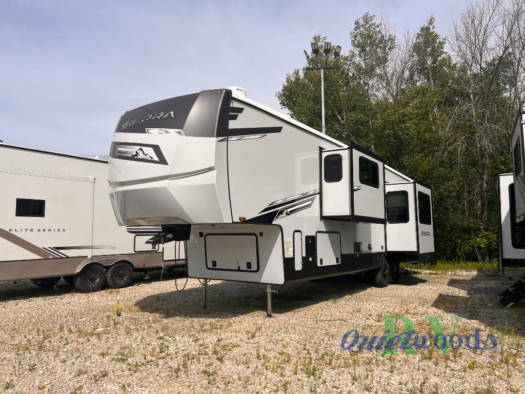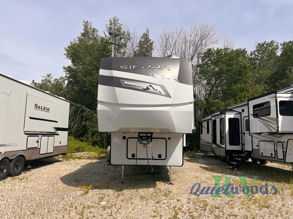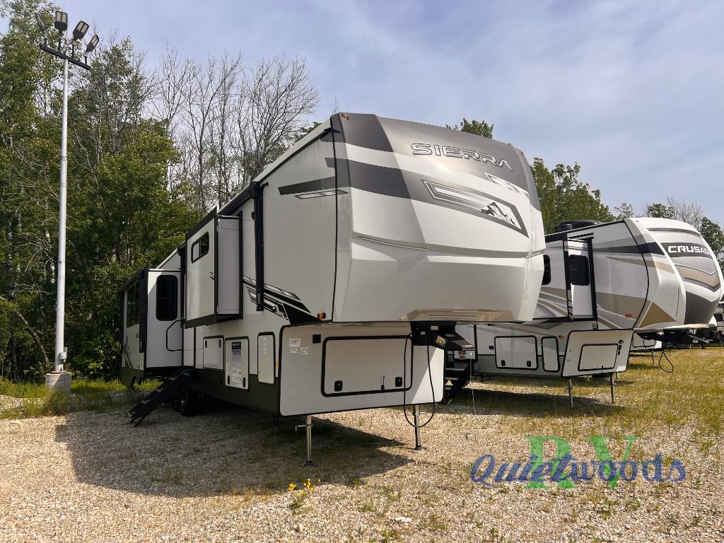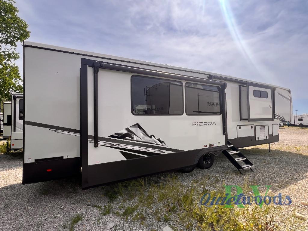 Each one of these Forest River Sierra fifth wheels are equipped with everything you need to make the most of each adventure! The underbelly armor will protect your unit's vitals from road debris and the painted two tone aerodynamic fiberglass front cap has an improved turning radius to make them easier to navigate. With an electric leveling system, you can set your unit up quick and easy then get to having fun faster than ever. The welded aluminum framed, vacuum bonded laminated superstructure will hold up through every adventure and the cambered powder coated frame comes with rust prohibitor to last longer. Each model also includes the Summit Package that comes with a king Wi-Fi extender system and Olympus antenna, a full coach water filter system, Goodyear tires with 7,000 lb. axles, and the list goes on. The interior is just as impressive with rustic wood plank linoleum, recessed residential lighting, a memory foam mattress, and mocha accent crown molding over the kitchen cabinets!