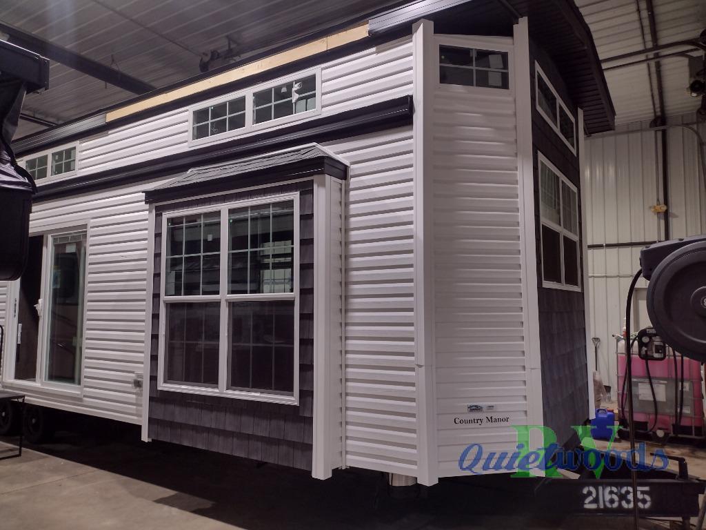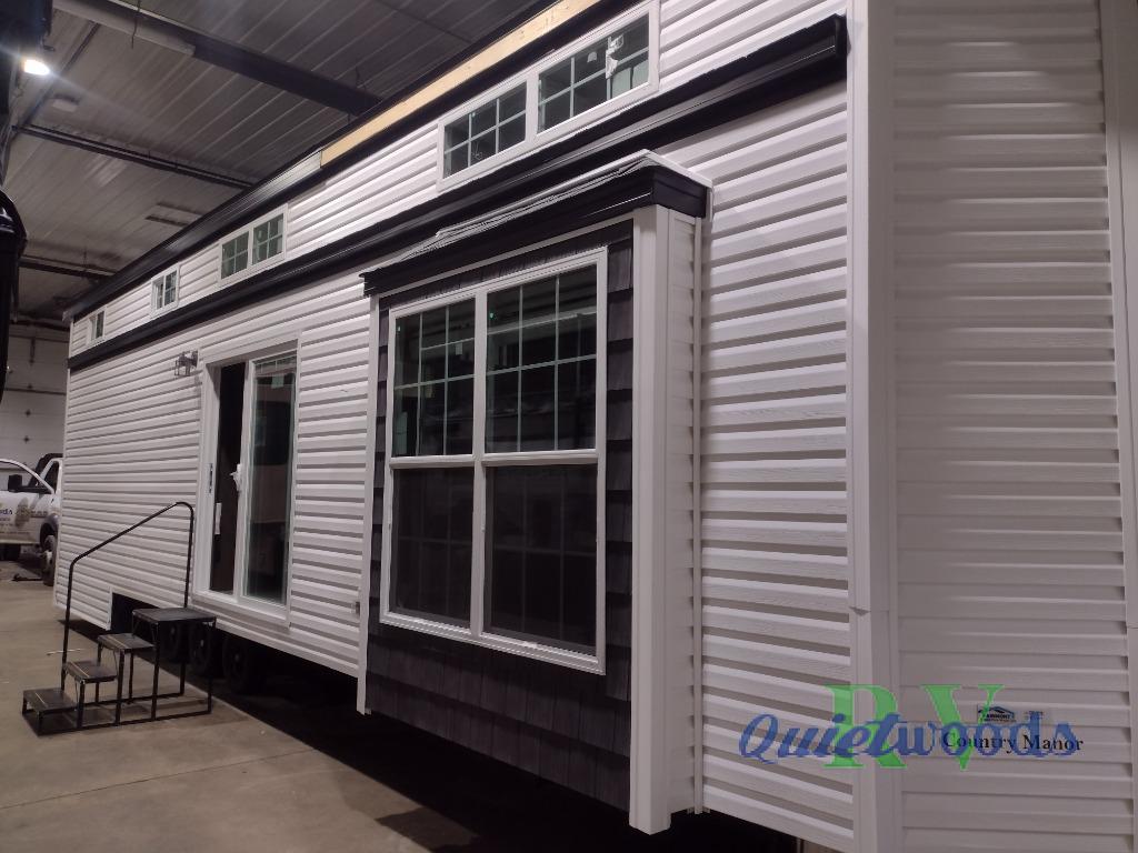 With any Country Manor park model by Fairmont you will enjoy years of use and memories thanks to the solid construction materials, such as an Owens Corning architectural shingled roof, a woven shepweave underbelly, a HomeGuard exterior weather house wrap wind barrier, and more! The Kinro windows will allow plenty of natural light in, and the residential crown molding will give that touch of luxury. Each model includes stainless steel Whirlpool appliances, high pressure dual laminated countertops and backsplash, and European style hidden cabinet hinges. These models also feature 1/2" residential textured drywall cathedral ceilings for better insulation and sound proofing, and the three decor choices will allow you to customize the interior to your liking.