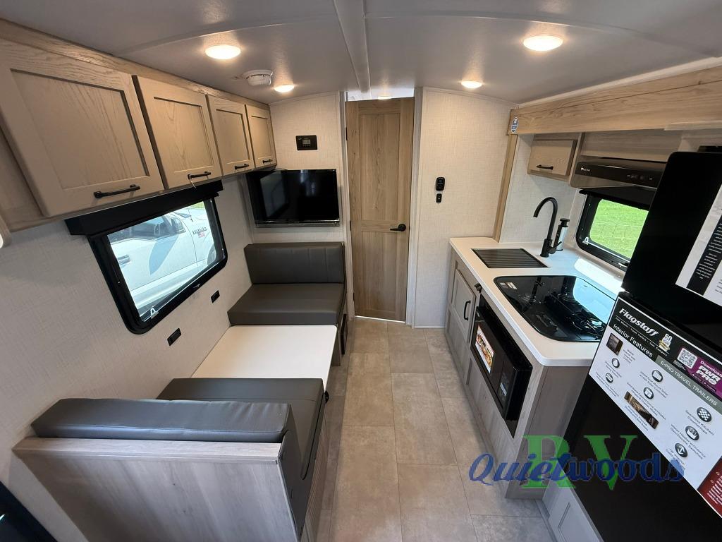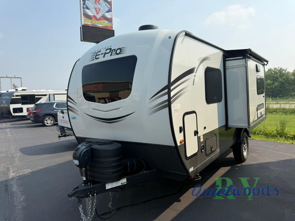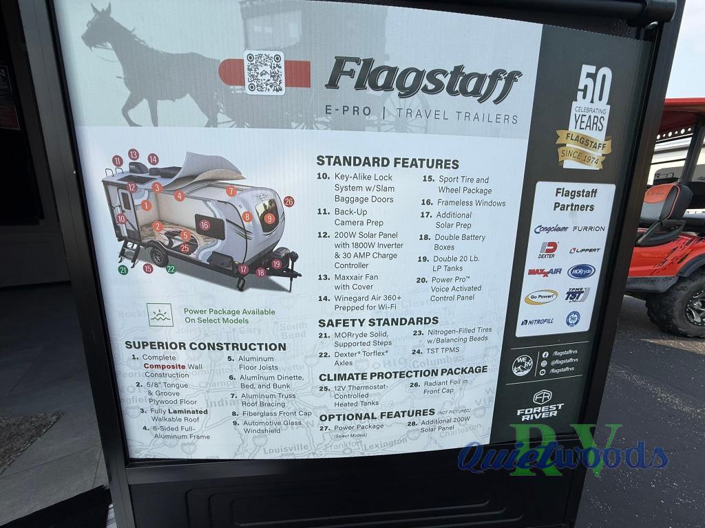 With any Flagstaff E-Pro travel trailer by Forest River, you will experience lightweight towing, style and features that will meet your needs, plus amenities that give you more than you expected! Built with interior and exterior composite sidewall construction, tongue and grove plywood flooring, and a vacuum laminated roof and walls, plus torsion axle, Rubber-Ryde suspension, and a tire pressure monitoring system for safety while traveling. And the 200 watt roof mount solar panel with 1,800-watt inverter will allow you to stay off-grid if you like. The interior offers a comfortable environment with the choice to use the air conditioner or furnace, and a 12V entertainment TV with a stereo to stay up to date on your favorite movies. Make your selection today!