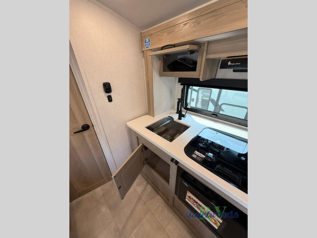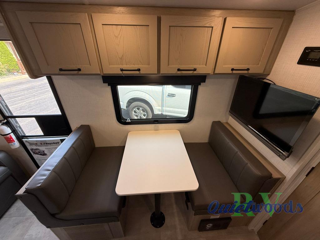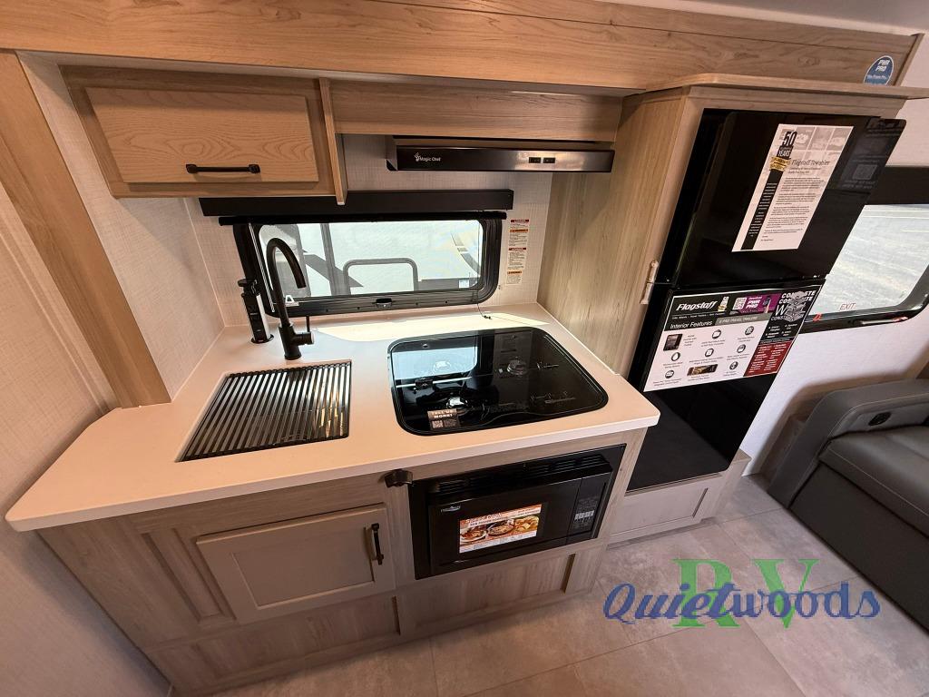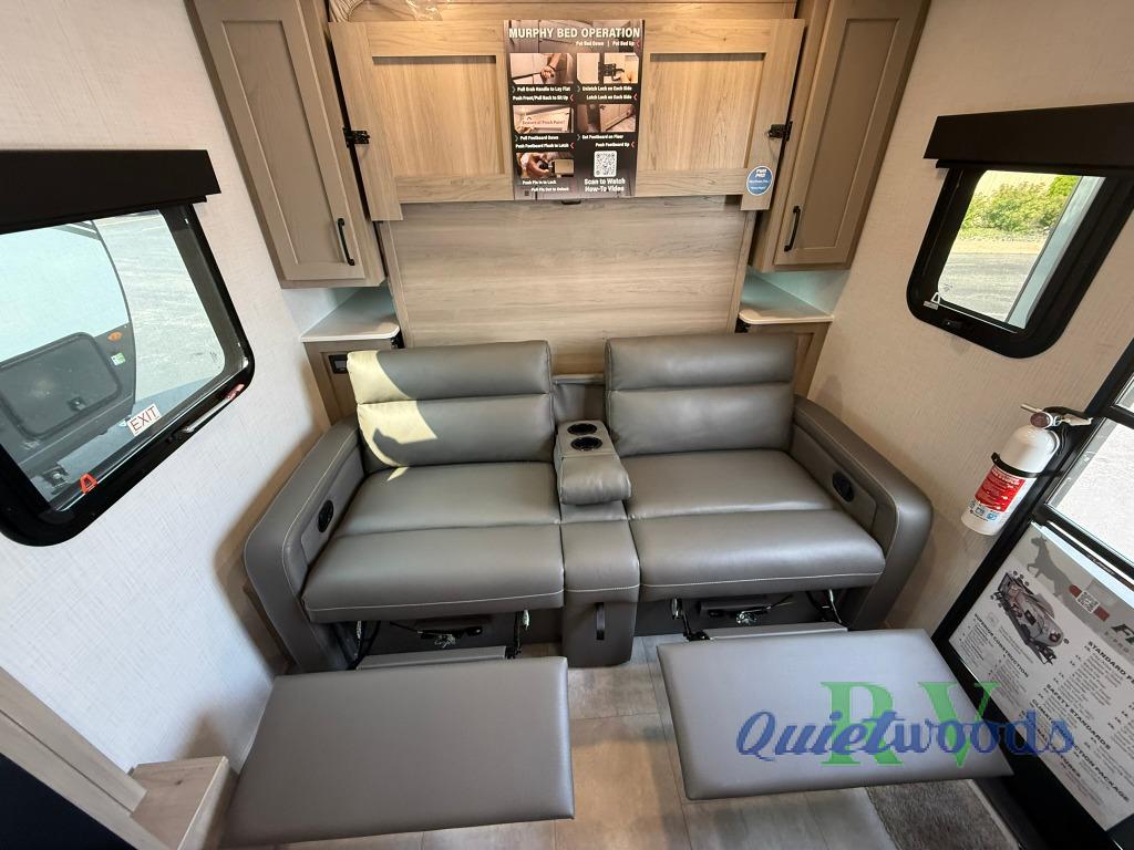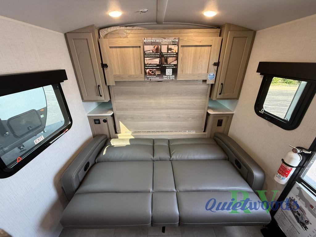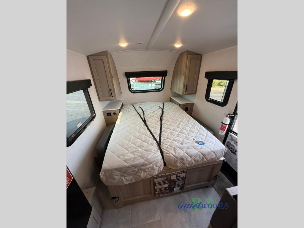 Camp with your favorite person in this trailer with the versatile Murphy bed/sofa combo up front giving you both a living area and a bedroom when you so choose. If you need sleeping space for one more, the dinette will provide that once easily setup. The large window gives you great views while dining or playing games. There is extra floor space in this trailer with the kitchen slide out that offers full amenities plus a sink to keep everything clean. And the full-length rear bathroom offers a spacious area to change your clothes in privacy and get cleaned up in the large shower.