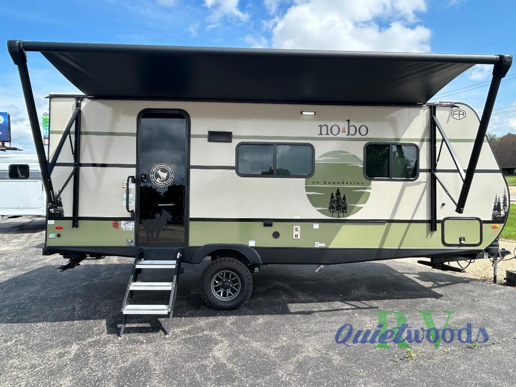 If you want to break free from the travel constraints of standard trailers, then you must choose the Forest River No Boundaries travel trailer because they are rugged and ready for adventure! These 18, 19, and 20 Series trailers are built with a laminated wall with aluminum construction and Azdel composite substrate for added durability. There is also a rugged tire and wheel package with a spare tire included, a fully enclosed underbelly, and a Cold Weather Package with 12V heated tank pads and forced air to help extend your camping season. A 15K A/C will provide comfort during the summer, and a Bluetooth speaker will let you listen to your favorite tunes while you're at the campground.