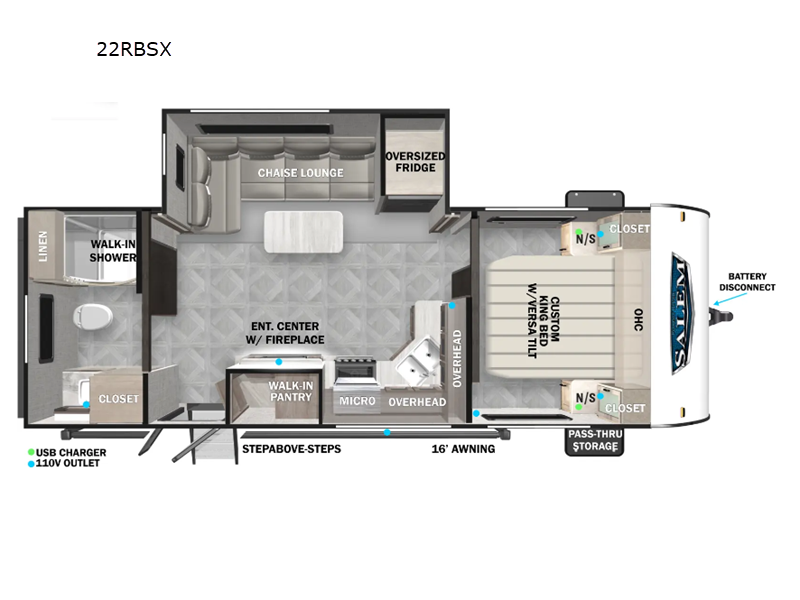 Forest River Salem Platinum travel trailer 22RBSX highlights: