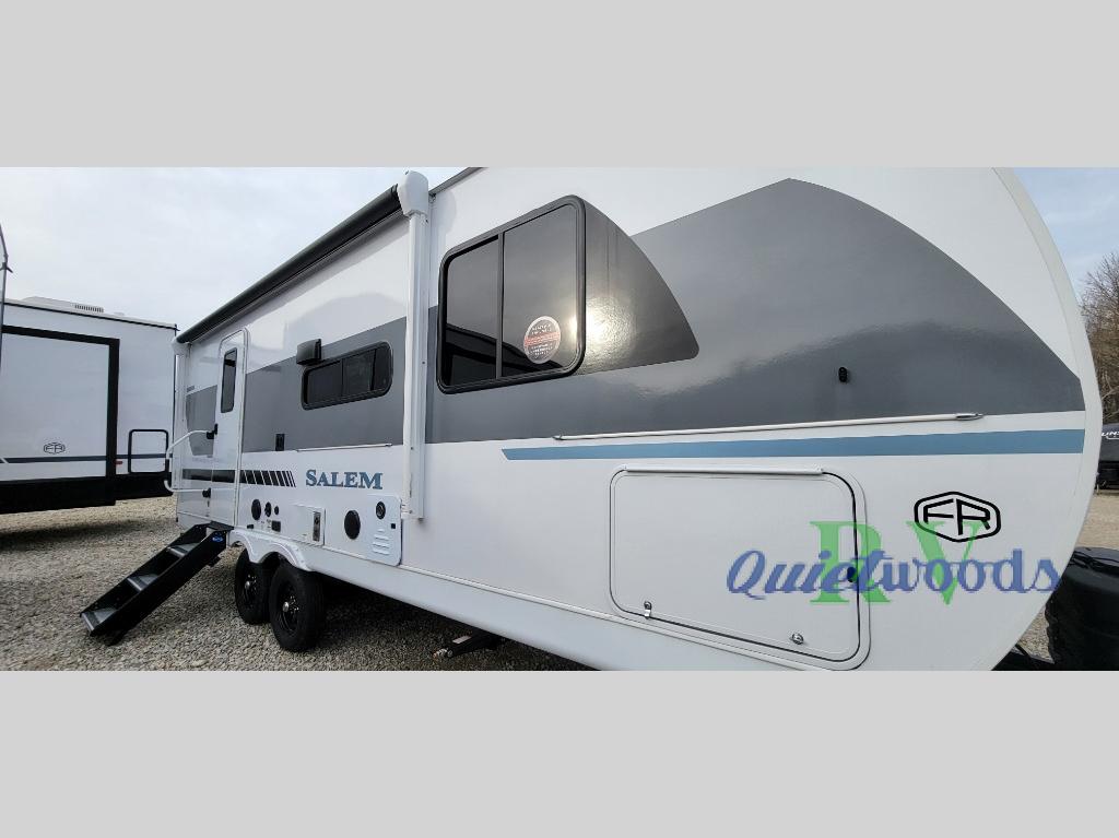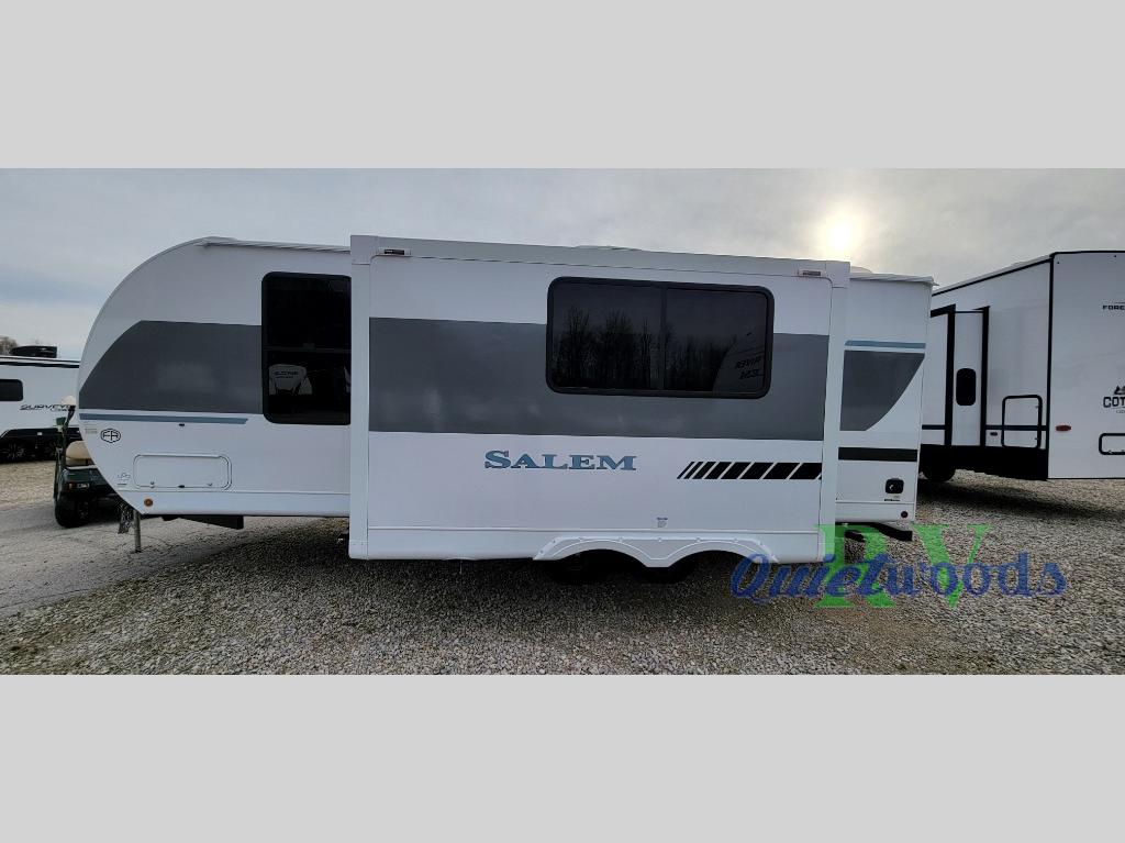 Enjoy years and years of memories with any one of these Forest River Salem travel trailers! They are built with a Dicor PVC roof membrane, a powder coated I-beam frame, and an aerodynamic front radius profile for an easier tow. The triple seal slide out system prevents water from seeping inside and keeps it outside where it belongs. The Best In Class Value Package includes upgraded designer furniture, seamless countertops with no T-mold, and two zone residential soundbars with FM, Bluetooth, HDMI and USB. You will also appreciate the heated and enclosed Accessi-Belly with removable underbelly panels, the power tongue jack with an LED light, and the designated CPAP storage. Some new upgraded features include: a Versa-Tilt bed, a 60K tankless water heater, upgraded showerhead, and so much more!