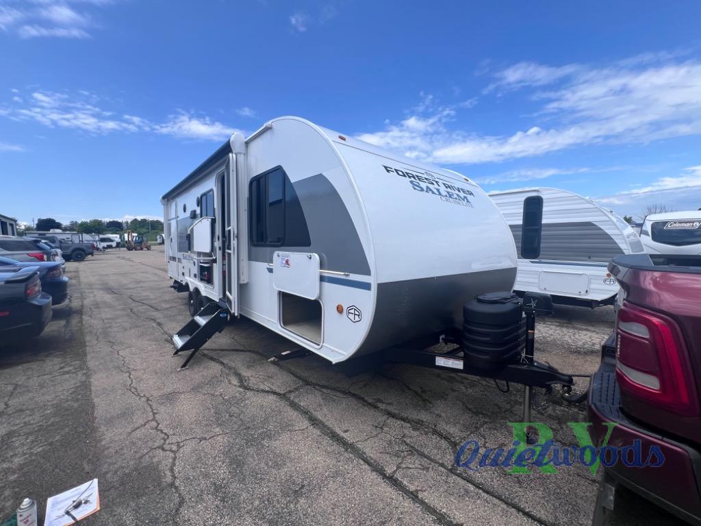Each one of these Forest River Salem Cruise Lite travel trailers offer quality and value with a full list of great features! They are built with a Dicor PVC roof membrane, a powder coated I-beam frame, a cambered chassis, and a triple seal slide system. The aerodynamic front radius profile makes it easier to tow these units, and the diamond plate rock guard will keep your unit protected while traveling down the road. Some of the new features you will enjoy are the upgraded shower head and upgraded high-rise spring kitchen faucet, the 60K tankless water heater, upgraded slide out fascia, and more!