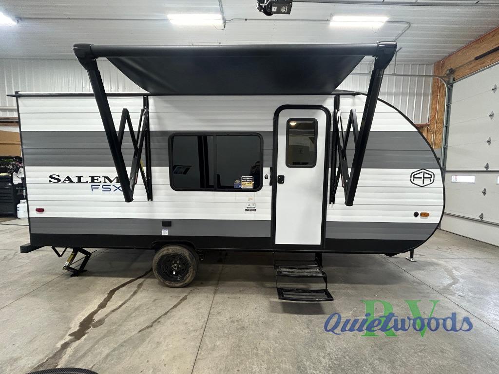 The Forest River Salem FSX travel trailers and toy hauler travel trailers are ultra comfortable and lightweight, perfect for first time or seasoned campers alike! You will love how easy it will be to relax with residential features that will make your space feel just like home, and the durable construction means you can enjoy your RV for years to come. There are a wide variety of floorplans to choose from, including couple's trailers, bunk models, and toy haulers, all with full bath and kitchen amenities and plenty of storage for all your gear!