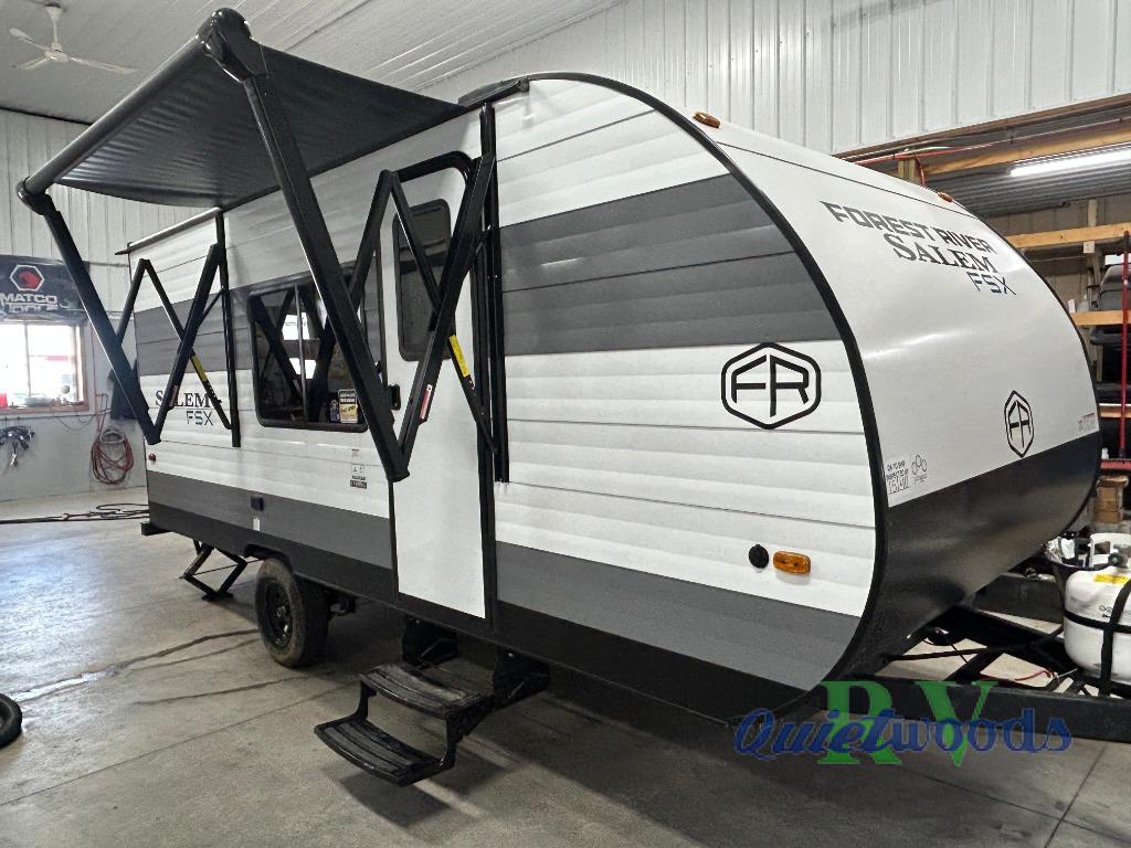 The Forest River Salem FSX travel trailers and toy hauler travel trailers are ultra comfortable and lightweight, perfect for first time or seasoned campers alike! You will love how easy it will be to relax with residential features that will make your space feel just like home, and the durable construction means you can enjoy your RV for years to come. There are a wide variety of floorplans to choose from, including couple's trailers, bunk models, and toy haulers, all with full bath and kitchen amenities and plenty of storage for all your gear!