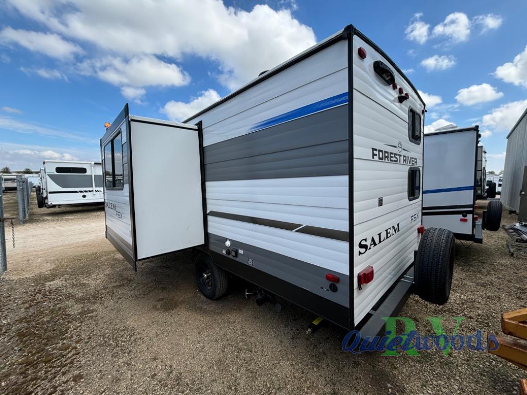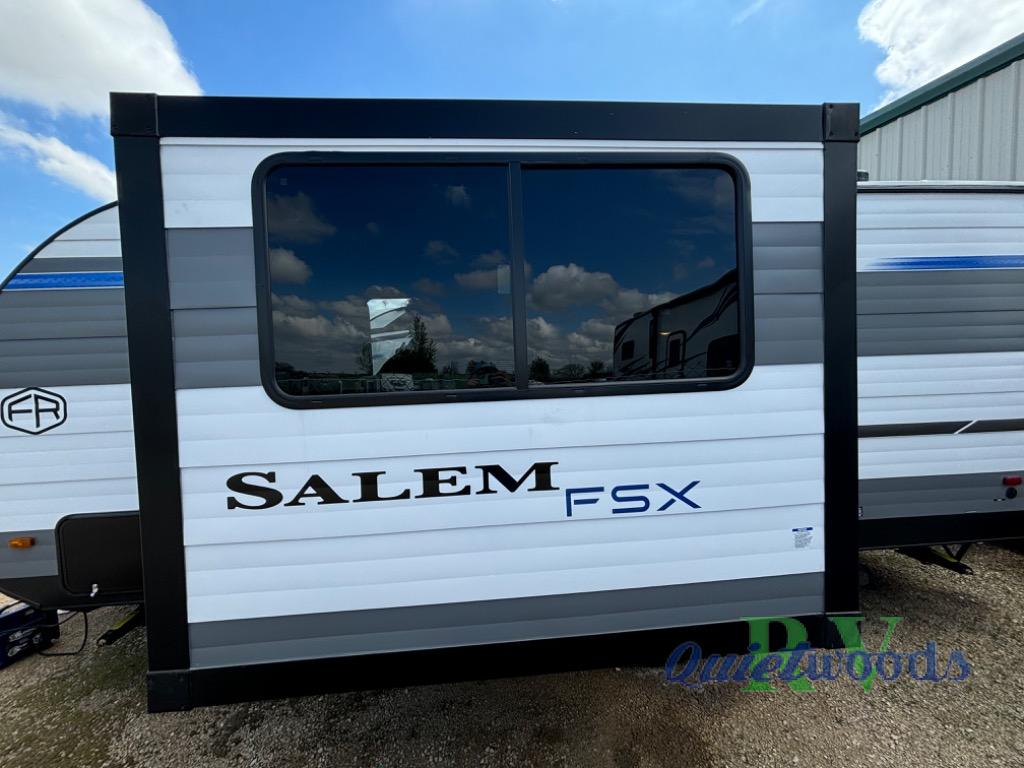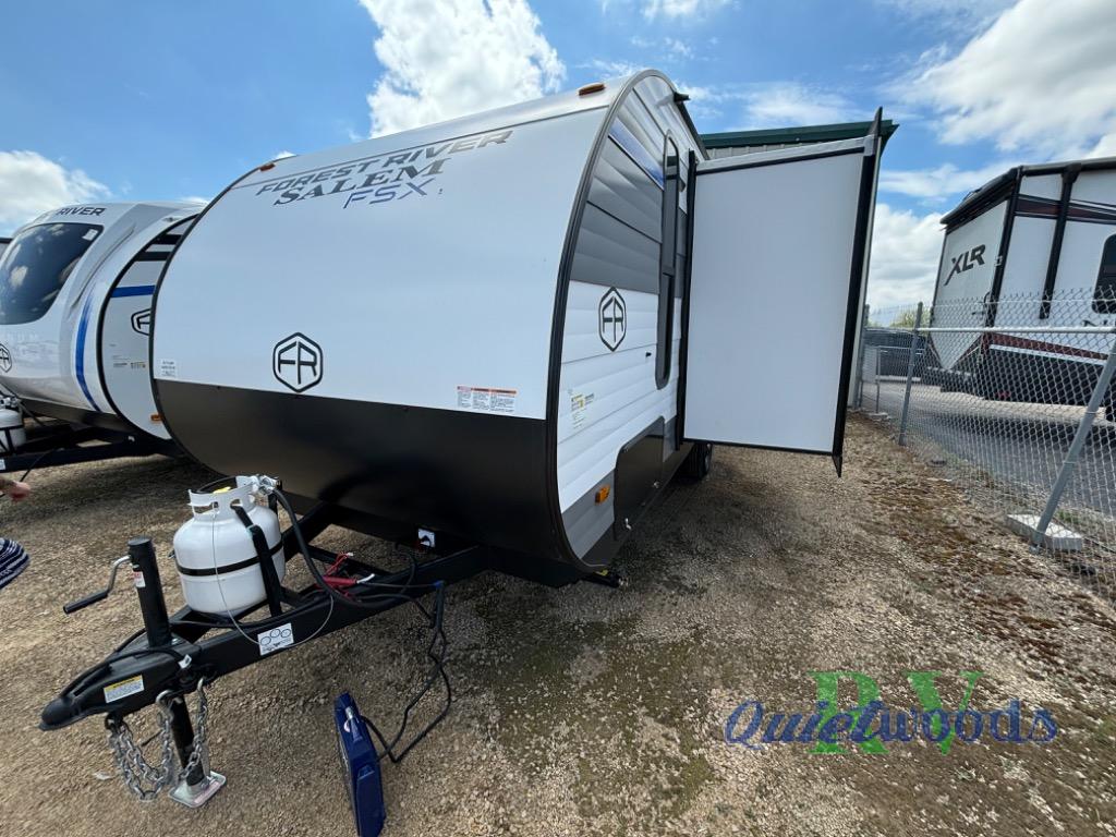 The Forest River Salem FSX travel trailers and toy hauler travel trailers are ultra comfortable and lightweight, perfect for first time or seasoned campers alike! You will love how easy it will be to relax with residential features that will make your space feel just like home, and the durable construction means you can enjoy your RV for years to come. There are a wide variety of floorplans to choose from, including couple's trailers, bunk models, and toy haulers, all with full bath and kitchen amenities and plenty of storage for all your gear!