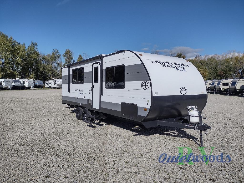The Forest River Salem FSX travel trailers and toy hauler travel trailers are ultra comfortable and lightweight, perfect for first time or seasoned campers alike! You will love how easy it will be to relax with residential features that will make your space feel just like home, and the durable construction means you can enjoy your RV for years to come. There are a wide variety of floorplans to choose from, including couple's trailers, bunk models, and toy haulers, all with full bath and kitchen amenities and plenty of storage for all your gear!