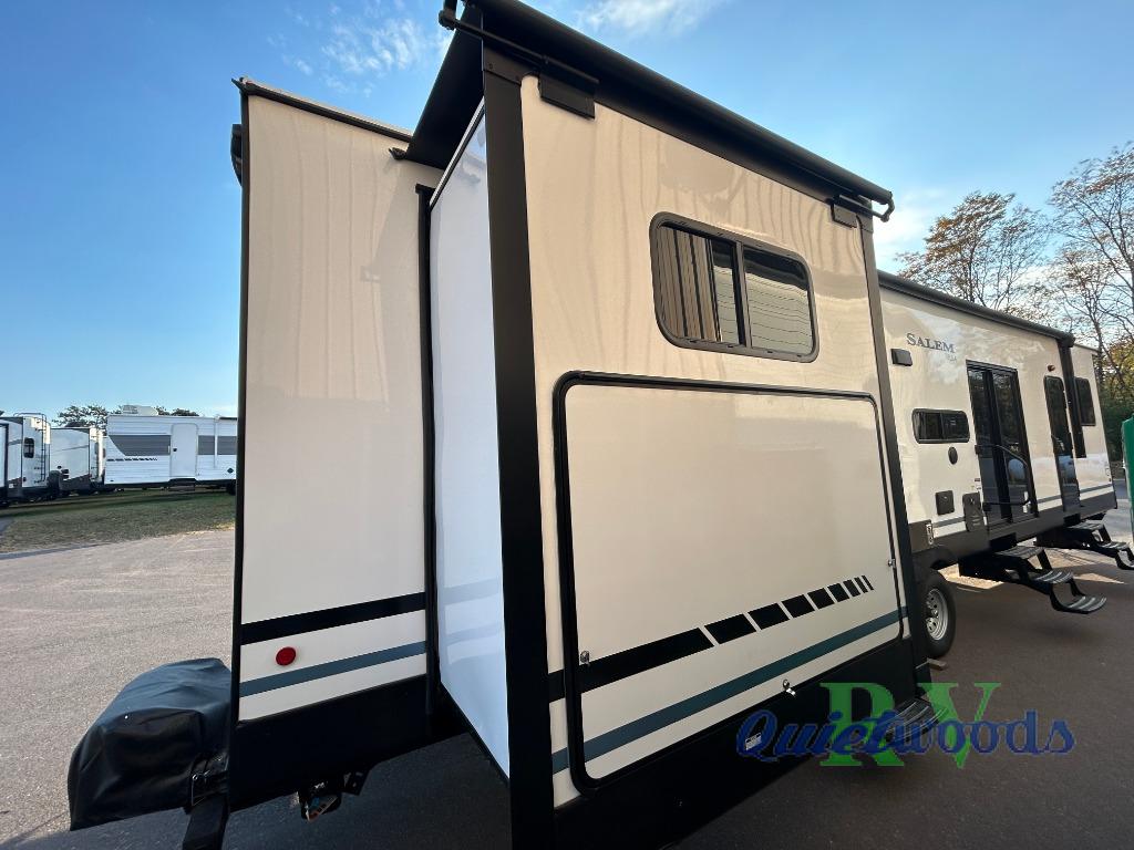 The Forest River Salem Villa Series destination trailer offers you an excellent space to relax in and rejuvenate your adventurous spirit! The 7' interior height is going to provide you with an open and spacious living area, and the heated and enclosed accessi-belly will protect your trailer from the elements. The Salem Villa Series comes loaded with upgraded designer furniture, a modern headboard redesign, stainless steel kitchen appliances, adjustable texture roller shades , and central vacuum with sweep attachment for a spotless home. There is also a few new features, including JBL speakers in the interior/exterior, a 4K blade lighting, a 60K tankless water heater, and more comforts!