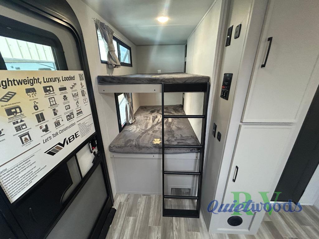 Are you looking to upgrade your RV to a trailer with more space and more features? Look no further than this Vibe! The kids are sure to claim the double-size bunks to themselves, while the adults take the front private bedroom with the queen bed. You will find even more sleeping space on the 5-person dinette and tri-fold sofa within the large slide out. After a day outdoors at the lake, get cleaned up in the full bath that includes a 40" x 30" shower.