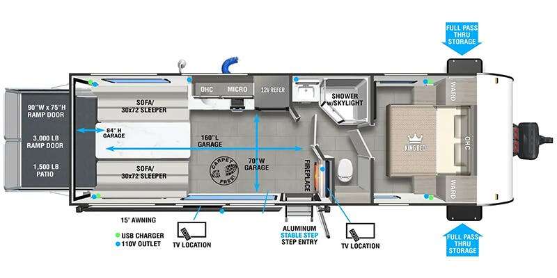 ?The 2025 Forest River Wildwood FSX 260RTK is a versatile and lightweight toy hauler designed for outdoor enthusiasts seeking both comfort and functionality. With a dry weight of 5,438 lbs and a cargo carrying capacity of 4,197 lbs, it's easily towable by many half-ton trucks, making it ideal for adventurers on the move.?