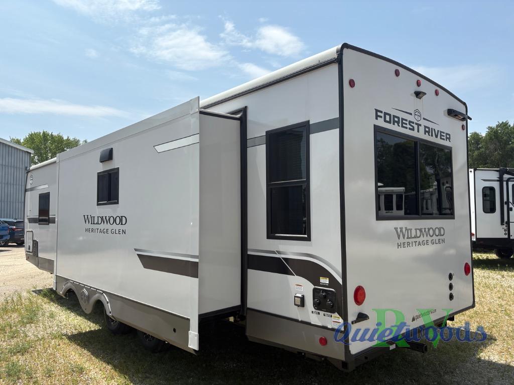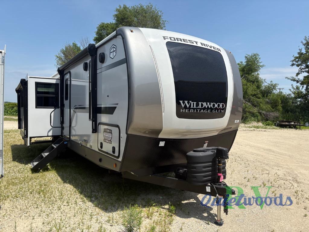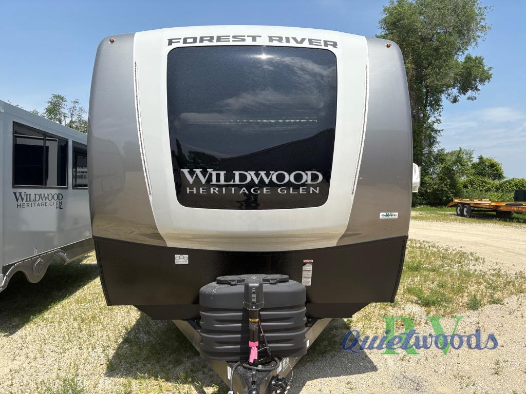 With any Wildwood Heritage Glen travel trailer by Forest River, the quality construction, attention to detail and design along with a bright and welcoming interior allows you to relax in comfort with conveniences while exploring outdoors. Each model includes a WeatherShield one piece fiberglass roof, Maxxis radial tires, and an enclosed underbelly with 12V tank heaters on all holding tanks for added protection. You will appreciate the on-demand tankless water heater, along with the 15K BTU Quite Cool A/C and 50 Amp service with a brace for a second A/C. There is an outside shower with hot and cold water, solar prep, a power stabilizer and tongue jack, plus many more exterior conveniences. Head inside to enjoy matte gold hardware, wood door casings in place of plastic door casings, and full length barreled ceilings for additional head room.
