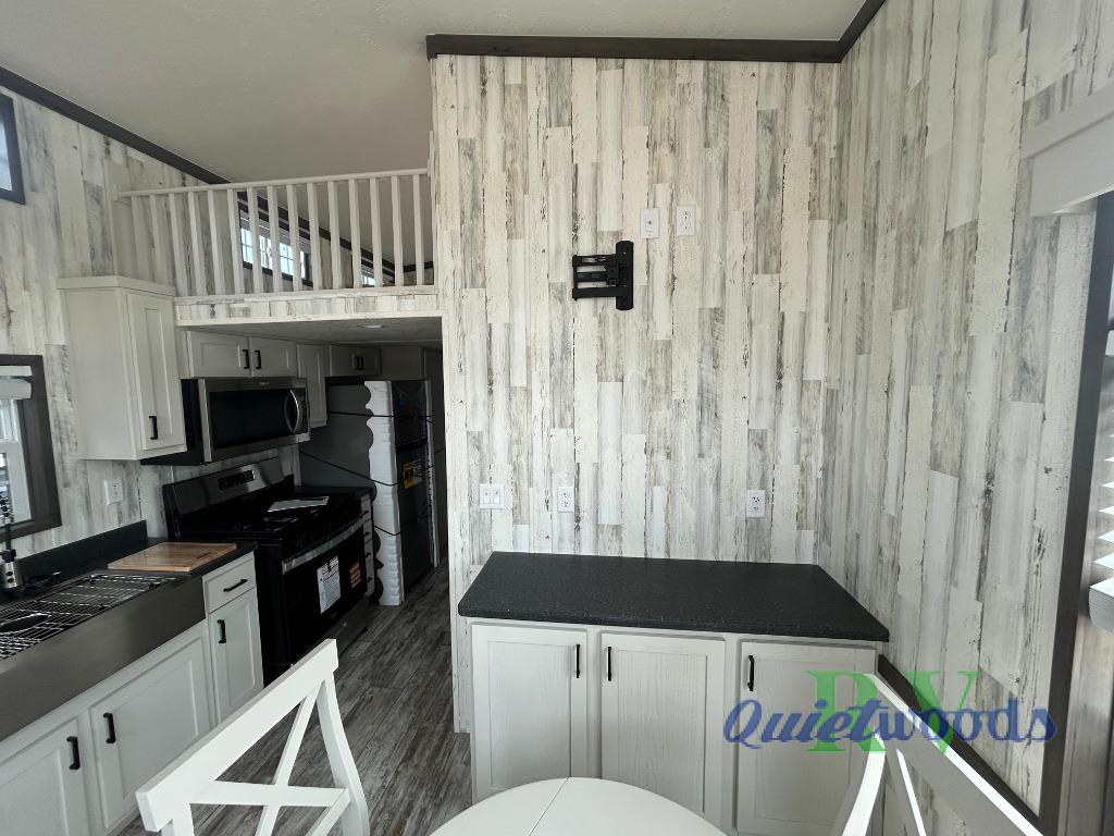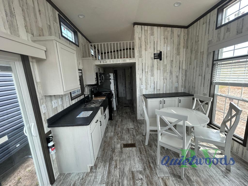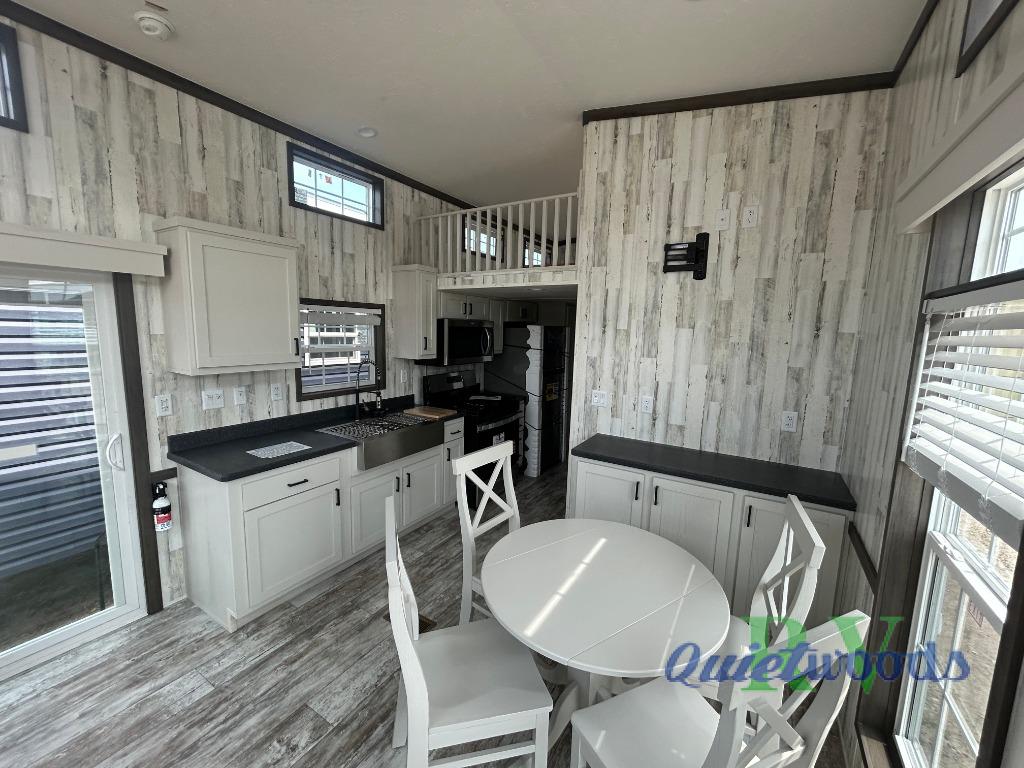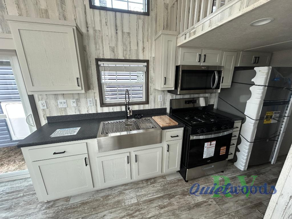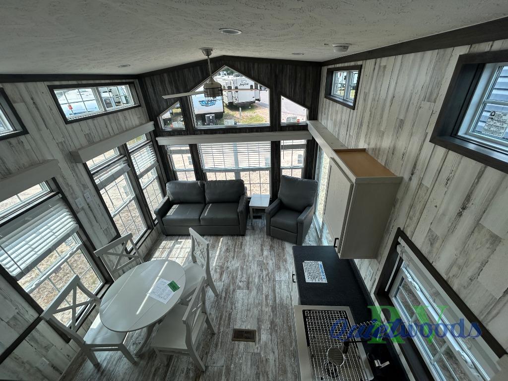 This park model is perfect when camping with friends or making this your home away from home. There are two private bedrooms with storage space, a full bath where everyone can freshen up, plus a loft with two loft areas for the little ones. The kitchen will allow the cook to cook meals each day, and the pantry will be perfect for paper goods and snacks. Once dinner is made, relax in the front living area!