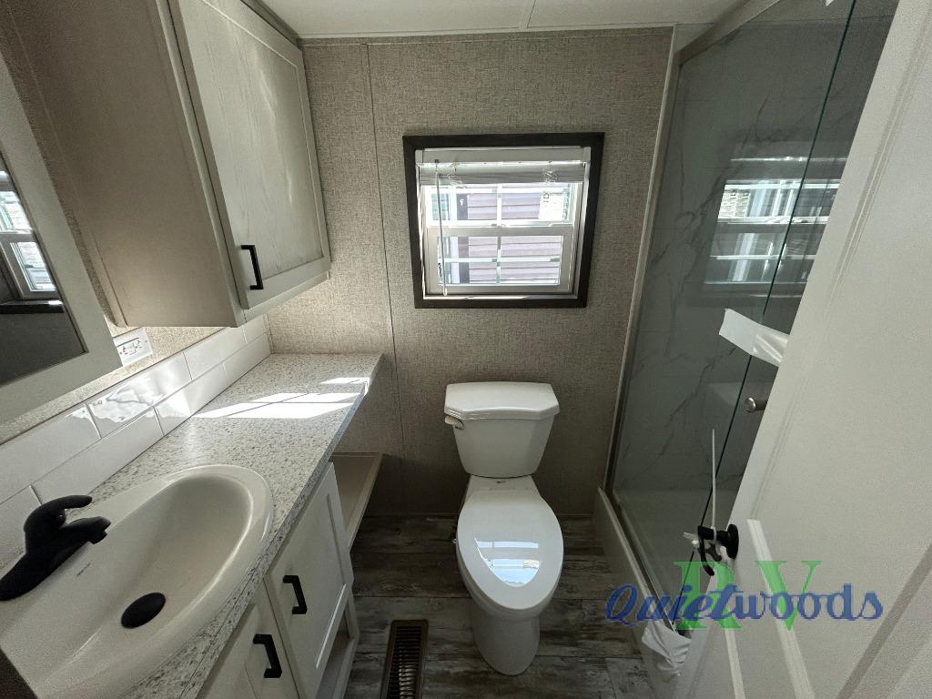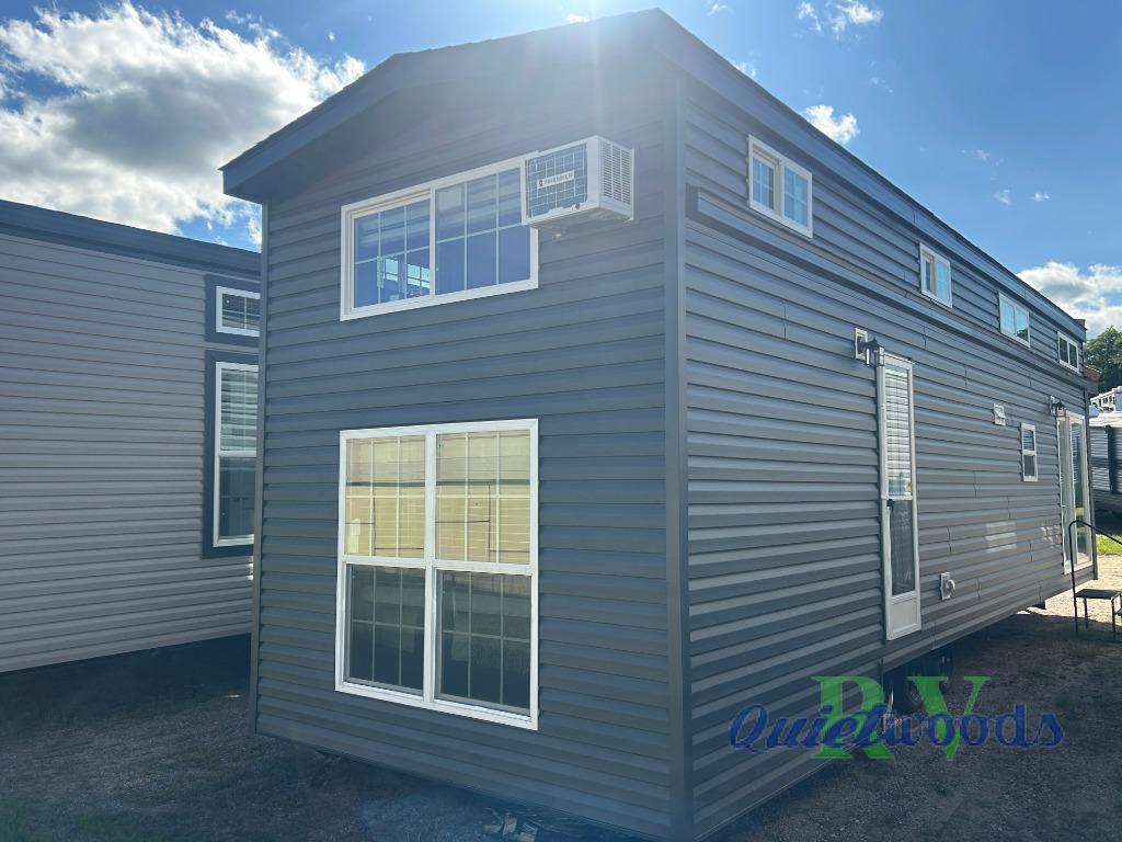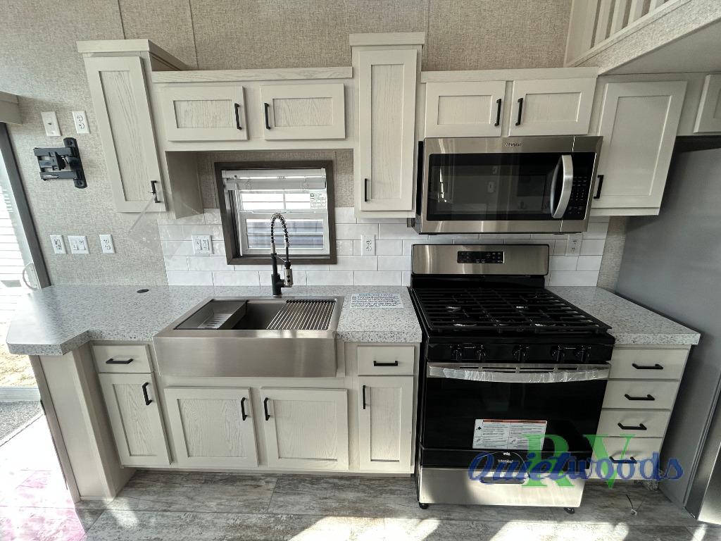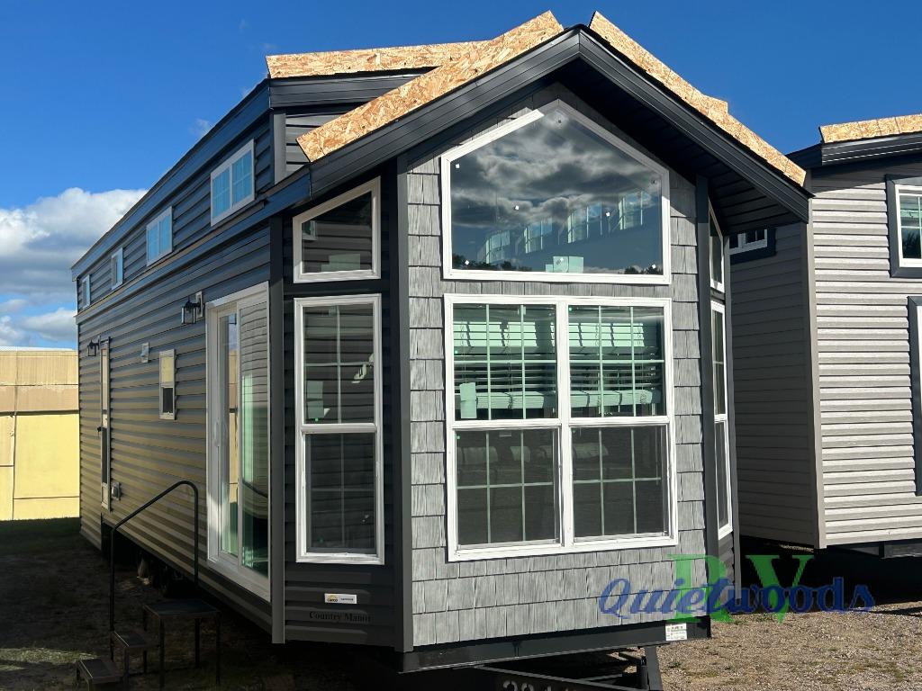 With any Country Manor park model by Fairmont you will enjoy years of use and memories thanks to the solid construction materials, such as an Owens Corning architectural shingled roof, a woven shepweave underbelly, a HomeGuard exterior weather house wrap wind barrier, and more! The Kinro windows will allow plenty of natural light in, and the residential crown molding will give that touch of luxury. Each model includes stainless steel Whirlpool appliances, high pressure dual laminated countertops and backsplash, and European style hidden cabinet hinges. These models also feature 1/2" residential textured drywall cathedral ceilings for better insulation and sound proofing, and the three decor choices will allow you to customize the interior to your liking.