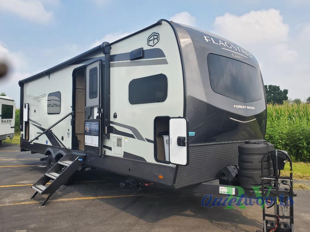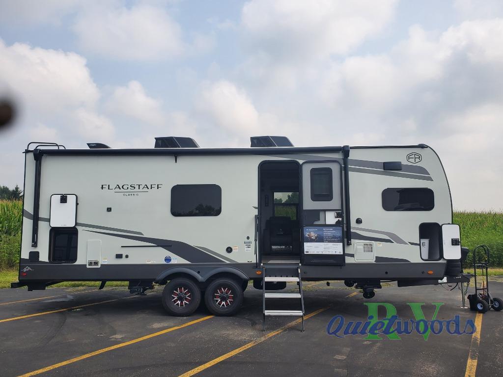 Each one of these Forest River Flagstaff Classic fifth wheels or travel trailers will be your home on wheels! Their quality craftsmanship and attention to detail shines through the enclosed underbelly, the fully laminated walkable roof, and six-sided full-aluminum frame. Towing your unit will be easy with the Goodyear Endurance tires plus RoadTech tire pressure monitoring. Additional exterior features include a 200W solar panel, slam baggage doors, a Key-Alike lock system, and double 30 lb. LP tanks to name a few conveniences. Head inside to find a residential style gas range, solid surface kitchen and bath countertops, soft close hidden cabinet hinges, and more comforts!