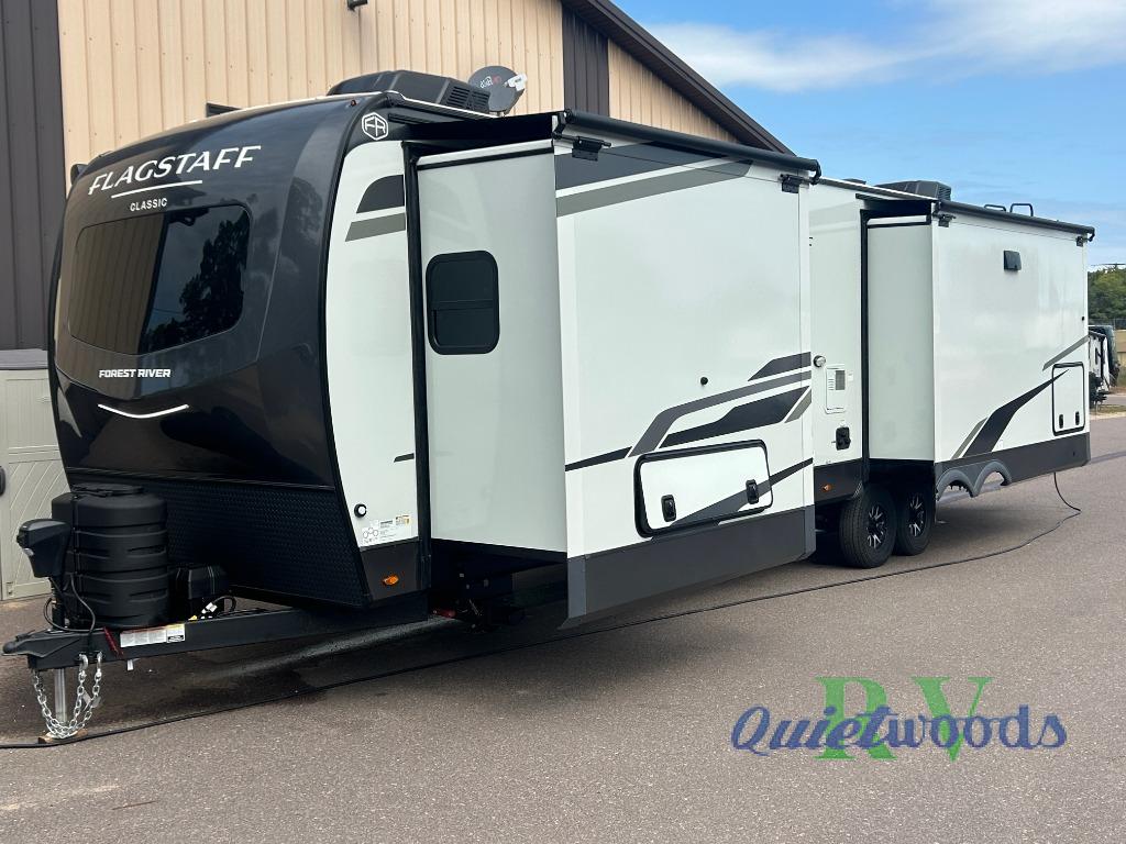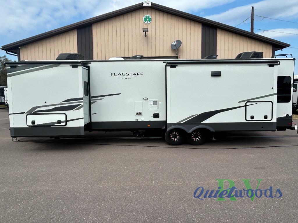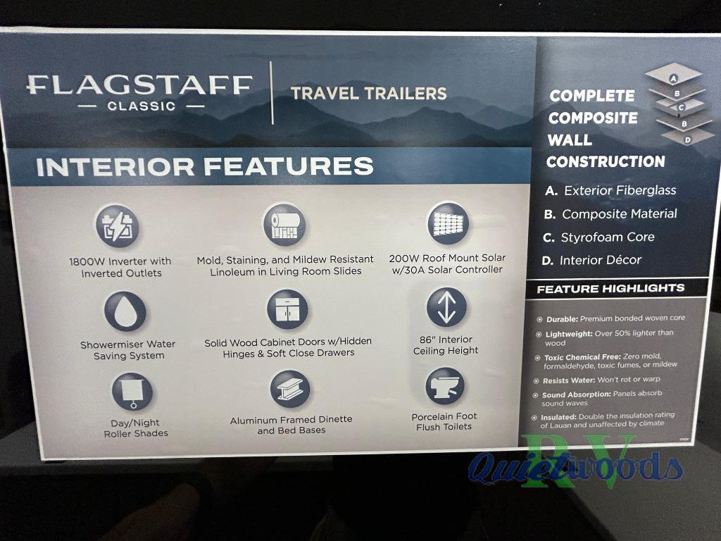Each one of these Forest River Flagstaff Classic fifth wheels or travel trailers will be your home on wheels! Their quality craftsmanship and attention to detail shines through the enclosed underbelly, the fully laminated walkable roof, and six-sided full-aluminum frame. Towing your unit will be easy with the Goodyear Endurance tires plus RoadTech tire pressure monitoring. Additional exterior features include a 200W solar panel, slam baggage doors, a Key-Alike lock system, and double 30 lb. LP tanks to name a few conveniences. Head inside to find a residential style gas range, solid surface kitchen and bath countertops, soft close hidden cabinet hinges, and more comforts!