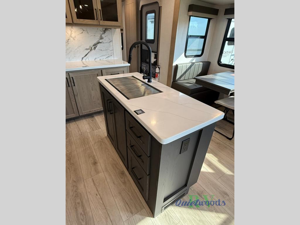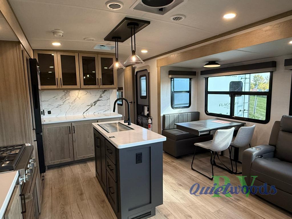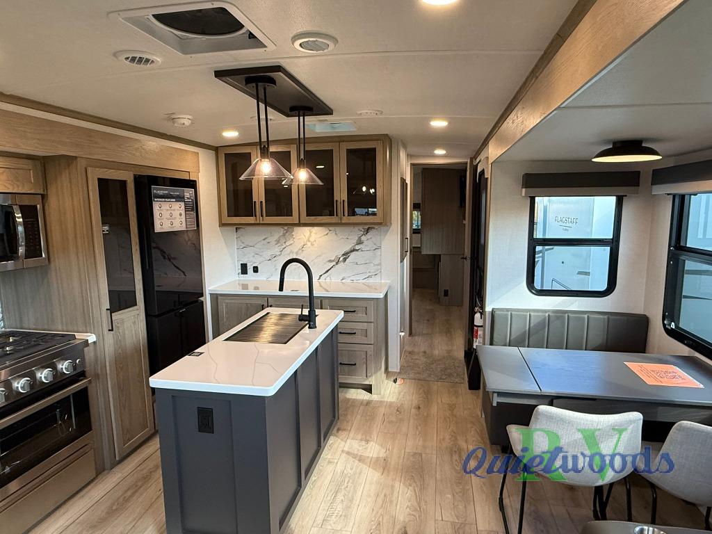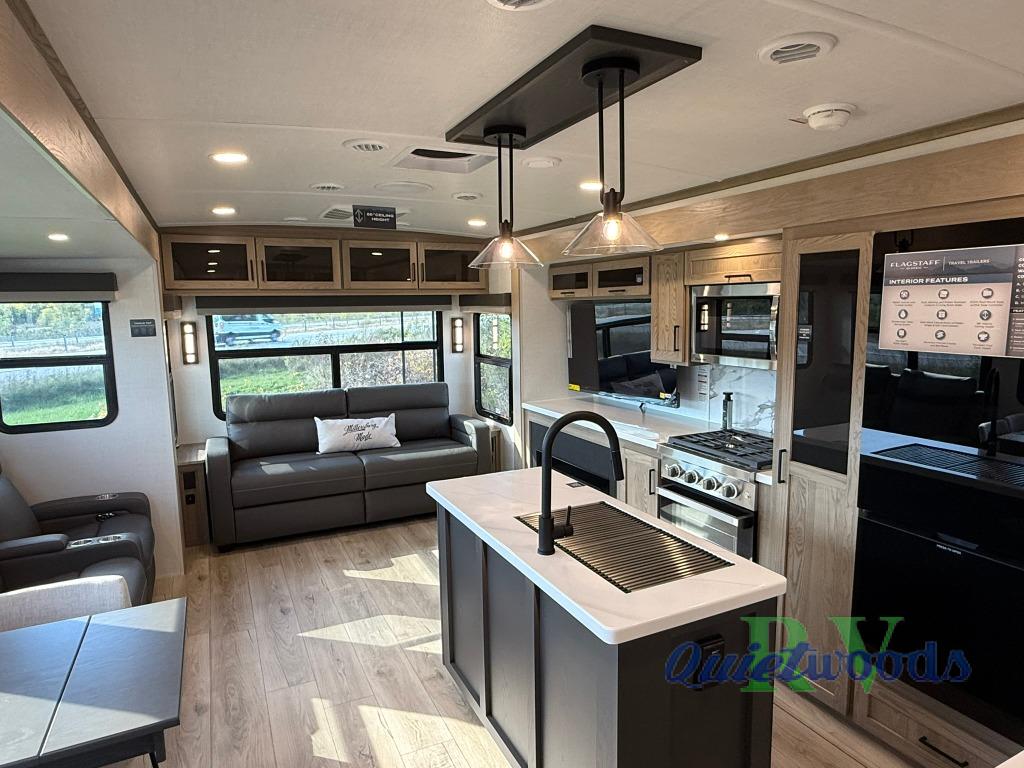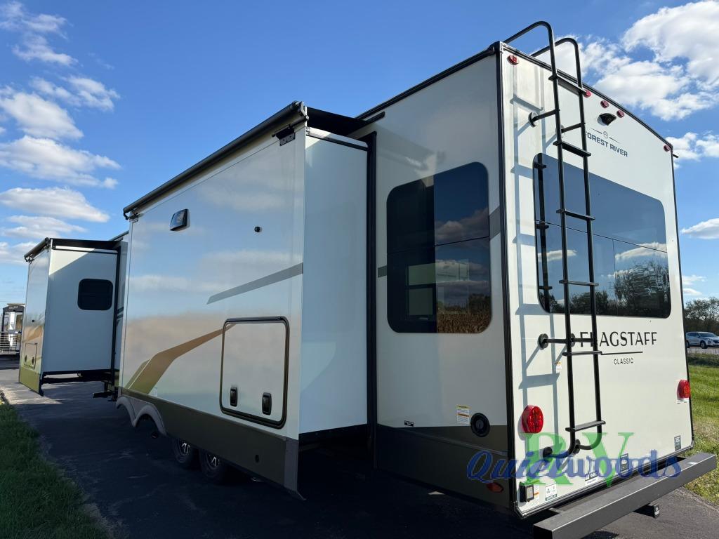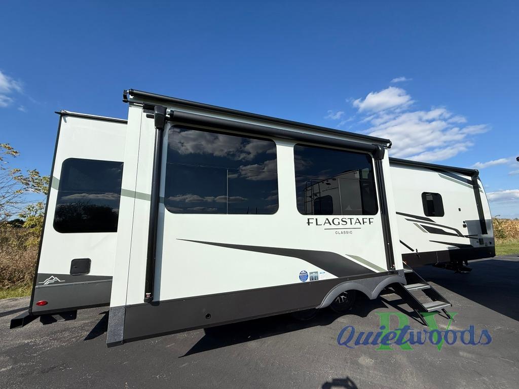 Each one of these Forest River Flagstaff Classic fifth wheels or travel trailers will be your home on wheels! Their quality craftsmanship and attention to detail shines through the enclosed underbelly, the fully laminated walkable roof, and six-sided full-aluminum frame. Towing your unit will be easy with the Goodyear Endurance tires plus RoadTech tire pressure monitoring. Additional exterior features include a 200W solar panel, slam baggage doors, a Key-Alike lock system, and double 30 lb. LP tanks to name a few conveniences. Head inside to find a residential style gas range, solid surface kitchen and bath countertops, soft close hidden cabinet hinges, and more comforts!