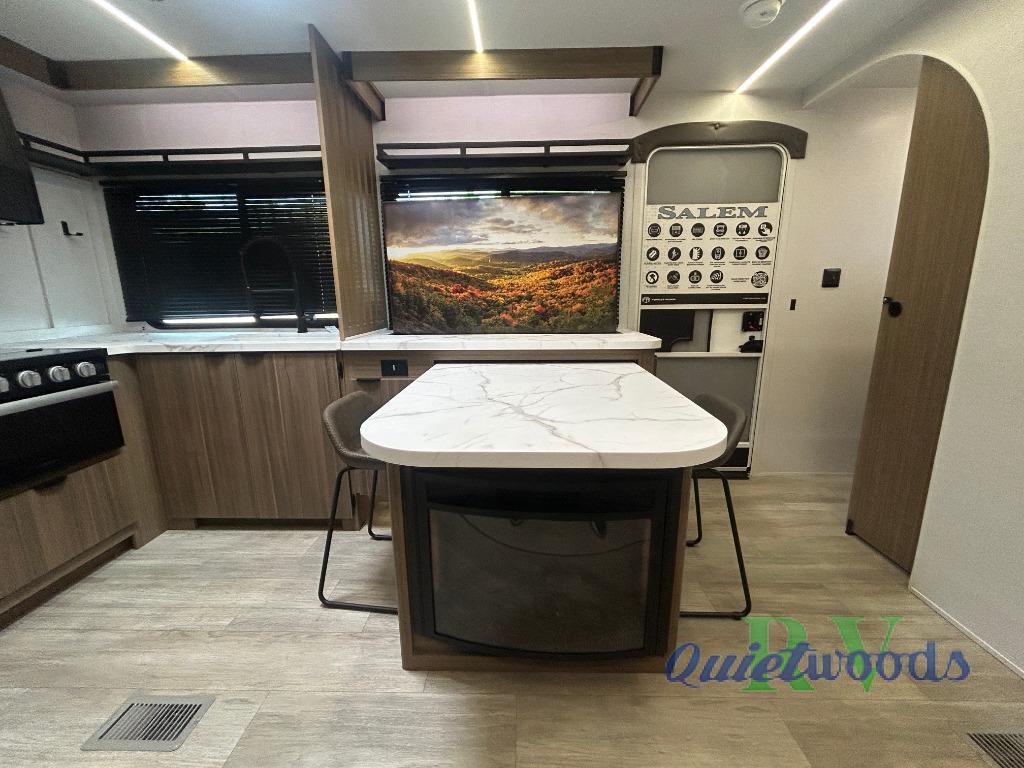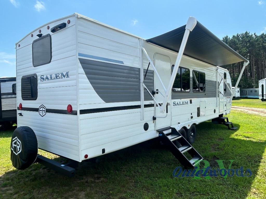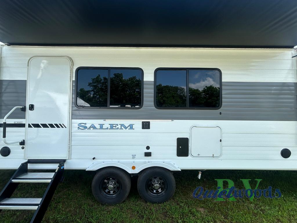 The 2026 Salem 300ICE Travel Trailer offers a full-featured, family-friendly floorplan with a private master suite, bunkhouse, convertible Versa Lounge, and residential-grade amenities. It's built for comfort and durability in all seasons—complete with heated underbody, solar prep, tankless water heater, and robust exterior finishes.
