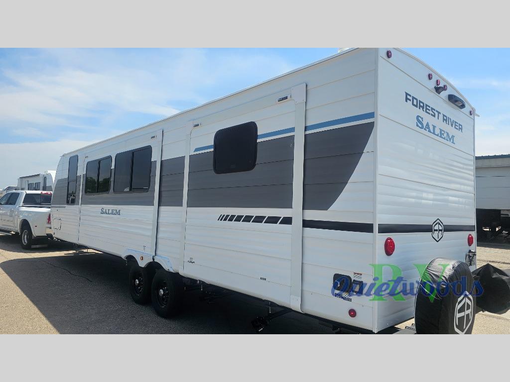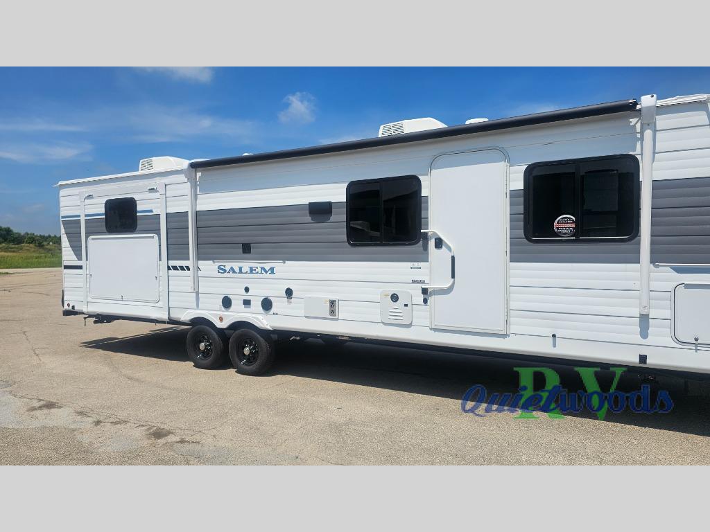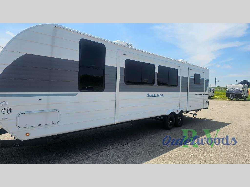The Salem travel trailers are packed with hassle-free camping amenities! There are a variety of floorplans to choose from between three different regions. The heated and enclosed Accessibelly will help protect against the elements and debris during transport, and the exterior retro/metal redesign is sure to be eye-catching! There are stylish roller shades inside, along with updated backsplash, elegant curtain rods and curtains, plus many more interior comforts! Choose a Salem travel trailer today for quality and value!