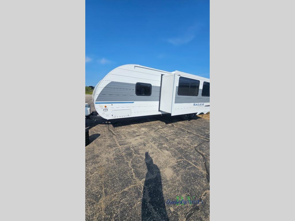 The Salem Cruise Lite travel trailers and toy haulers are value-minded units packed with great camping features! There are a variety of floorplans to choose from between two different regions. The enclosed Accessibelly will help protect against the elements and debris during transport, and the exterior retro/metal redesign is sure to be eye-catching! There are stylish roller shades inside, along with updated backsplash, elegant curtain rods and curtains, plus many more interior comforts! Choose a Salem Cruise Lite today for quality and value!