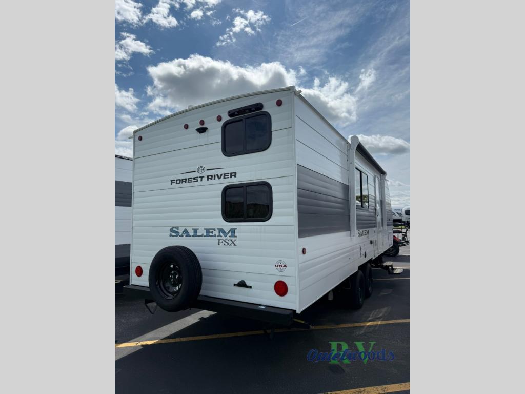 The Forest River Salem FSX travel trailers and toy hauler travel trailers are ultra comfortable and lightweight, perfect for first time or seasoned campers alike! You will love how easy it will be to relax with residential features that will make your space feel just like home, and the durable construction means you can enjoy your RV for years to come. There are a wide variety of floorplans to choose from, including couple's trailers, bunk models, and toy haulers, all with full bath and kitchen amenities and plenty of storage for all your gear!