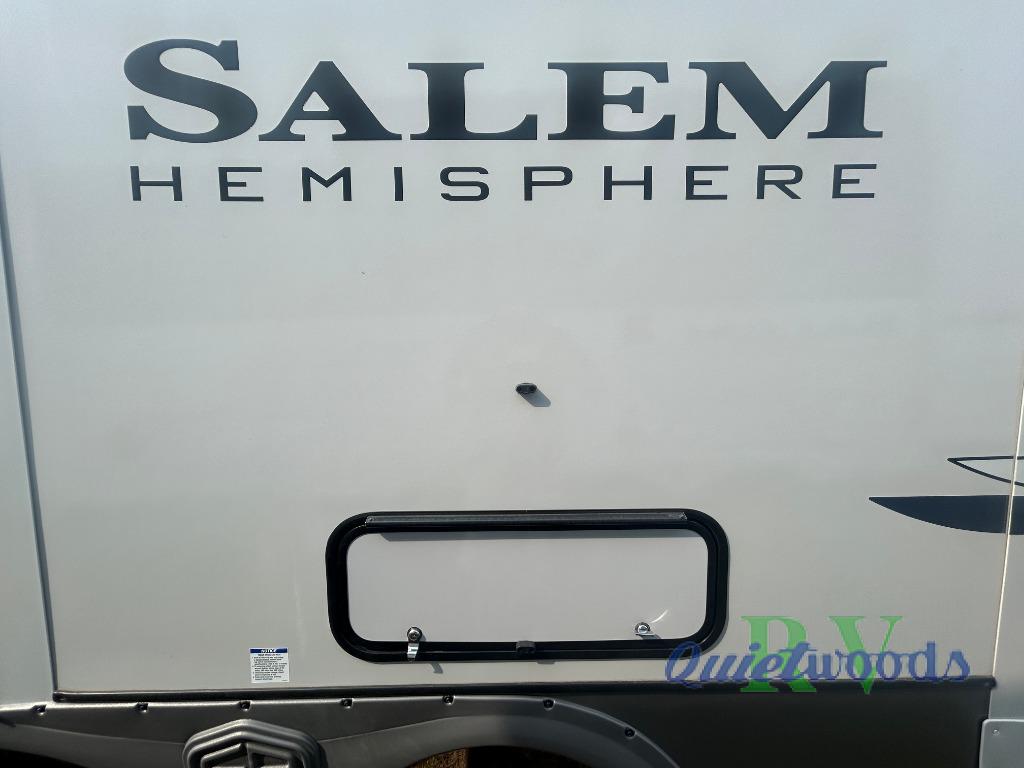 The Salem Hemisphere fifth wheels and travel trailers by Forest River are packed with features, while still being value-minded! Each model is constructed with laminated "Aluma Frame" sidewalls and floor with block foam insulation plus full length barreled ceilings for added head space. There are LED awning, marker and tail lights outside, along with an extra large pass-thru storage with slam latch baggage doors, plus solar prep and Lippert On-The-Go ladder prep. The 60K on-demand tankless water heater will provide endless hot showers, and the JBL sound system includes a head unit plus interior and exterior speakers to keep the party going. There are also many interior comforts found throughout that will make you feel right at home!