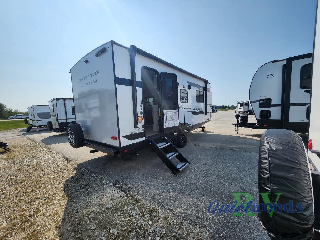 With any Surveyor Legend travel trailer by Forest River you will enjoy quality craftsmanship, convenient amenities, and at-home comforts. The Azdel composite walls provide a longer-lasting trailer, and the power tongue jack with a hitch light will get you back on the road in no-time. There are also Goodyear tires and a tire pressure monitoring system for hassle-free towing. Each model includes the Surveyor Legend Package that comes standard with oversized dinette storage access doors, front slam latch baggage doors, plus an automotive style tinted front windshield. You'll appreciate camping with a tankless water heater for endless hot showers, a 2" accessory hitch to bring bikes along, plus carpet-free interiors and a central vacuum system for easy clean up.