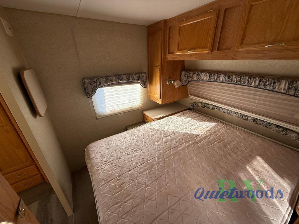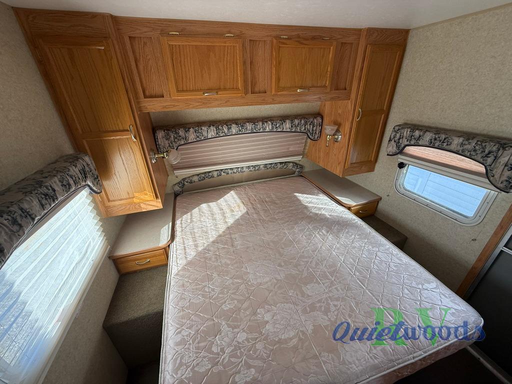 Single Slide, Rear Living Area w/TV Cabinet, Opt. Lounge Chair, Chest, J-Steel Sofa/Booth Dinette & Wardrobe, Double Kitchen Sink, Microwave, 3 Burner Range, Refrigerator, Lav., Medicine Cabinet, Tub/Shower, Front Queen Bed w/Wardrobes, Overhead Cabinet, Chests & TV Shelf, Overhead Cabinets Throughout, and Much More!