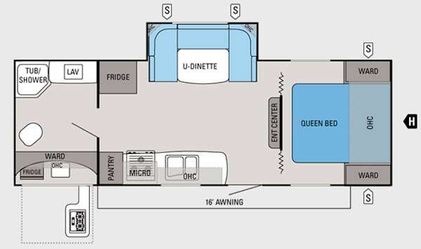 Single Slide Jayco Jay Feather Ultra Lite Travel Trailer, Rear Bath w/Lav., Tub/Shower, Toilet, Wardrobe, Pantry, Microwave, 3-Burner Range, Dbl. Kitchen Sink, Ent. Center, Queen Bed, Dbl. Wardrobes, U-Dinette Slide, Refrigerator, Overhead Cabinets Throughout, 16' Awning, Outside Kitchen w/Refrigerator, Single Sink, 2-Burner Range & Much More.