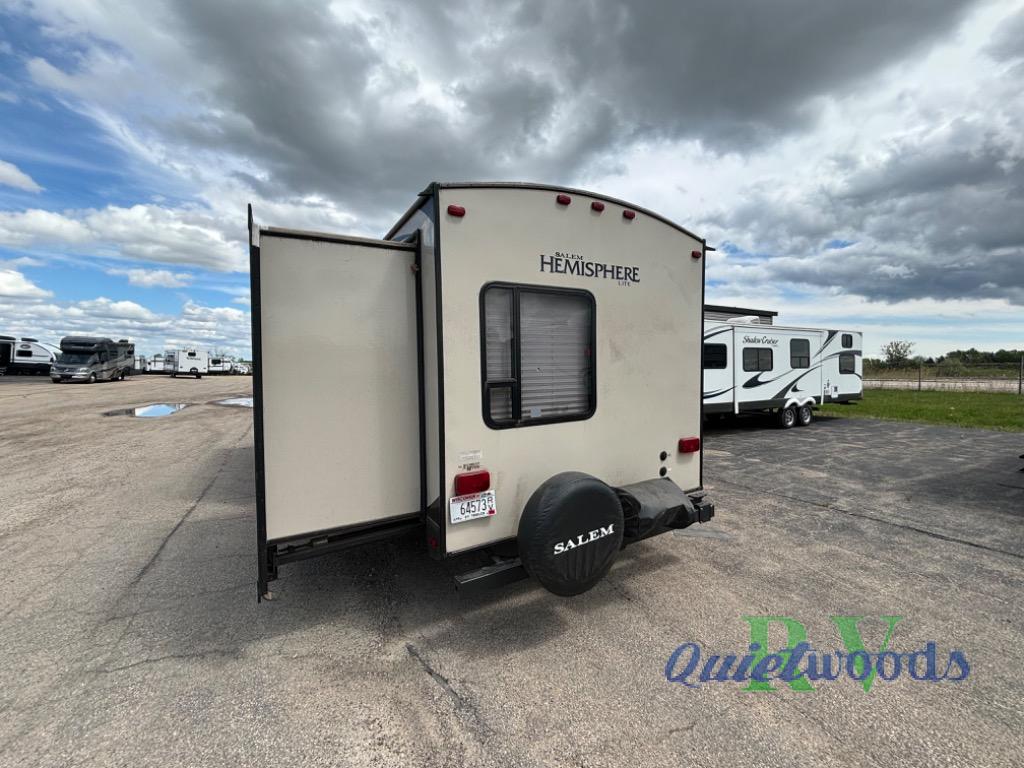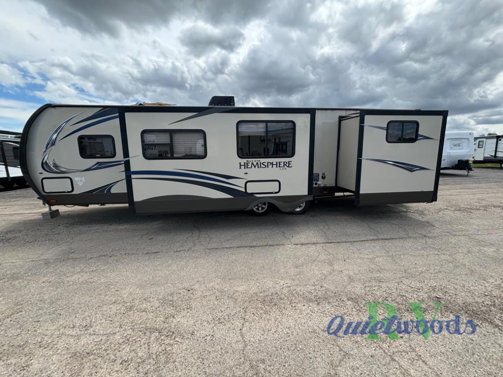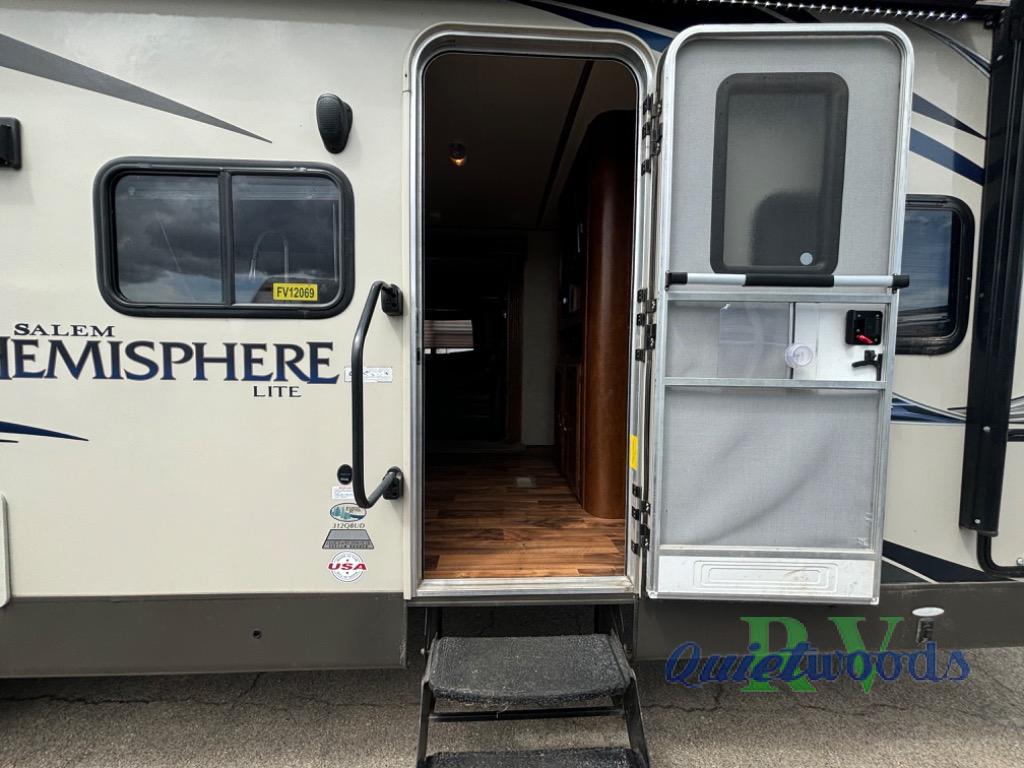 The Salem Hemisphere Lite 312QBUD travel trailer by Forest River offers double slides and a rear bunk house.