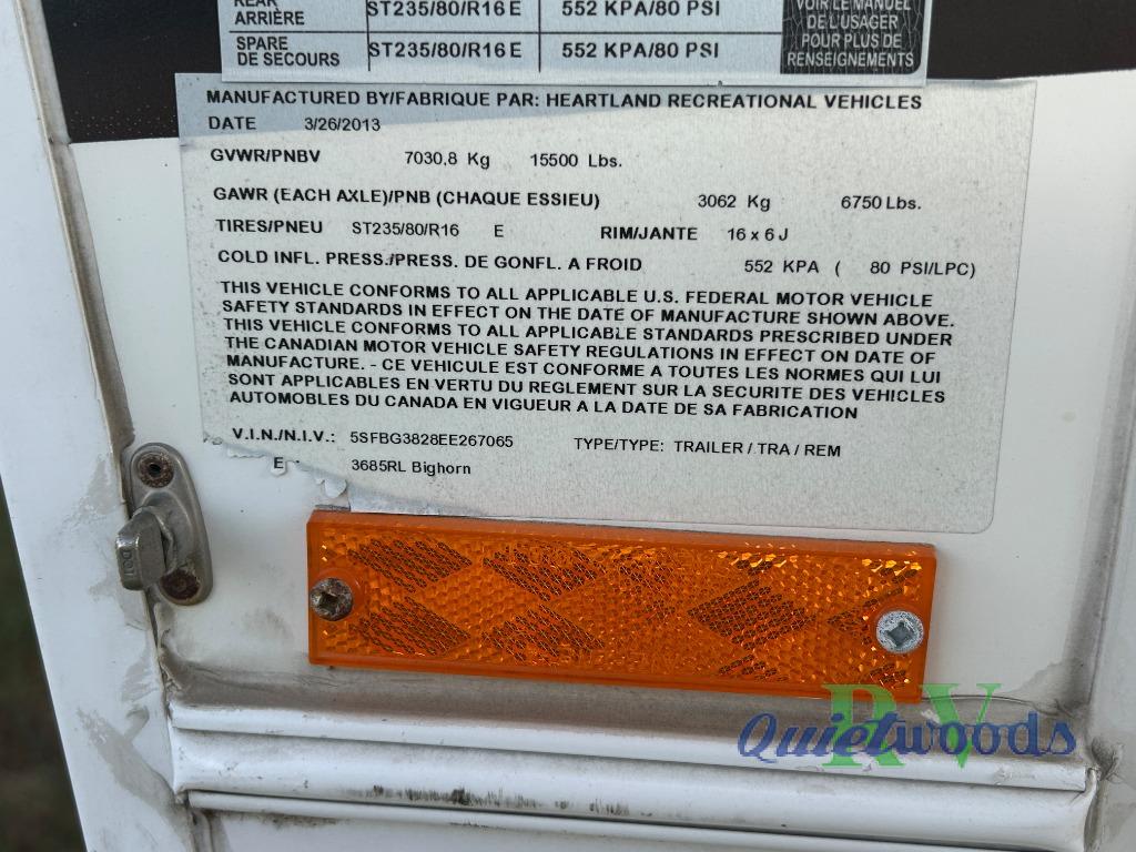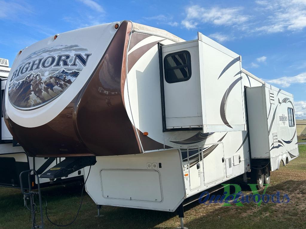 This rear living Bighorn fifth wheel by Heartland RV has got you covered with everything needed to enjoy time away from home. Model 3685RL features triple slides for added interior space, a convenient kitchen island, and a spacious master suite with king size bed!