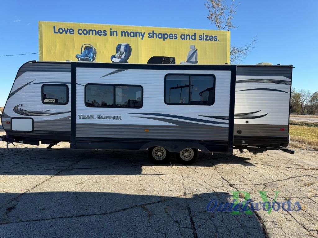 This Heartland Trail Runner travel trailer features a large slide out for added interior space, plus a standard outdoor kitchen that the chef in the family will love!