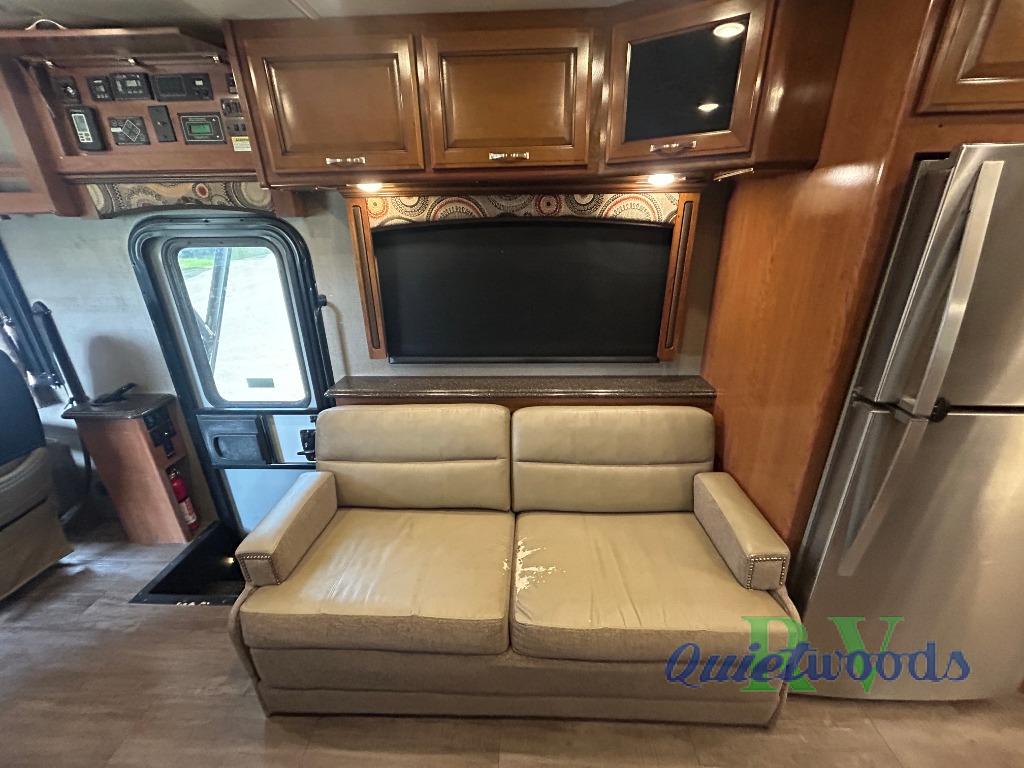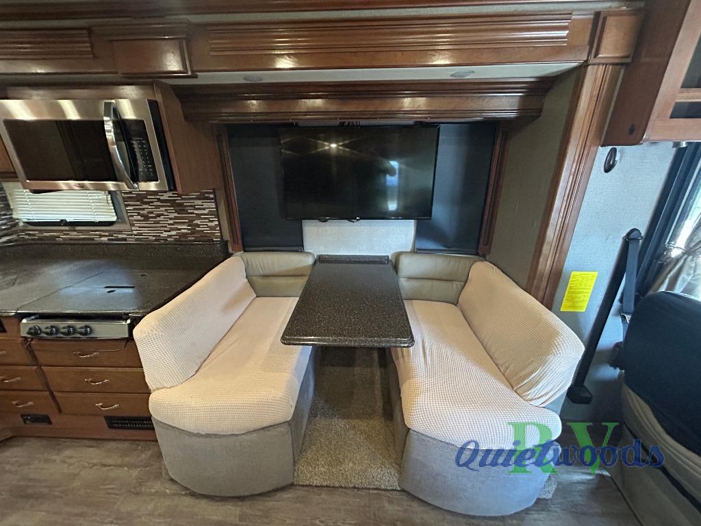 Outdoors, you’ll love gathering around the exterior entertainment center with a 40" LED TV beneath the power awning, perfect for tailgating or winding down in the evening.
