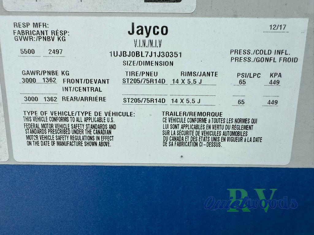 When you choose a Jay Feather expandable you can rest assured that you have chosen quality construction with features such as an aerodynamic, rounded front profile with front diamond plate plus there are vacuum-bonded, laminated bed platforms with reverse-cambered support of 1,100-lb. capacity, plus water-repellent, scratch-resistant Jayco DuraTek vinyl tent material with zipper windows. Inside you will find crown molding with wood batten strips along the ceiling, LED lighting throughout, and ball-bearing drawer glides with a 75-lb. capacity. The mandatory Customer Value Package includes features such as a spare tire and cover, power awning, outside shower, plus AM/FM/CD/DVD/Bluetooth stereo and more! For your next camping trip, come choose a Jay Feather expandable!