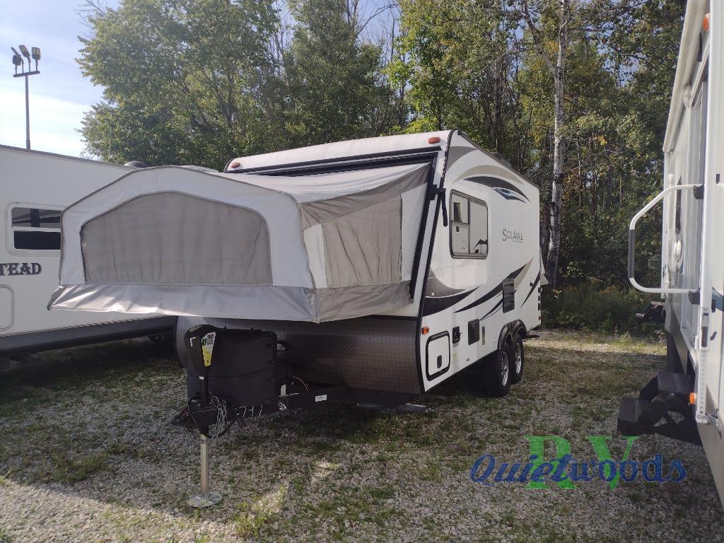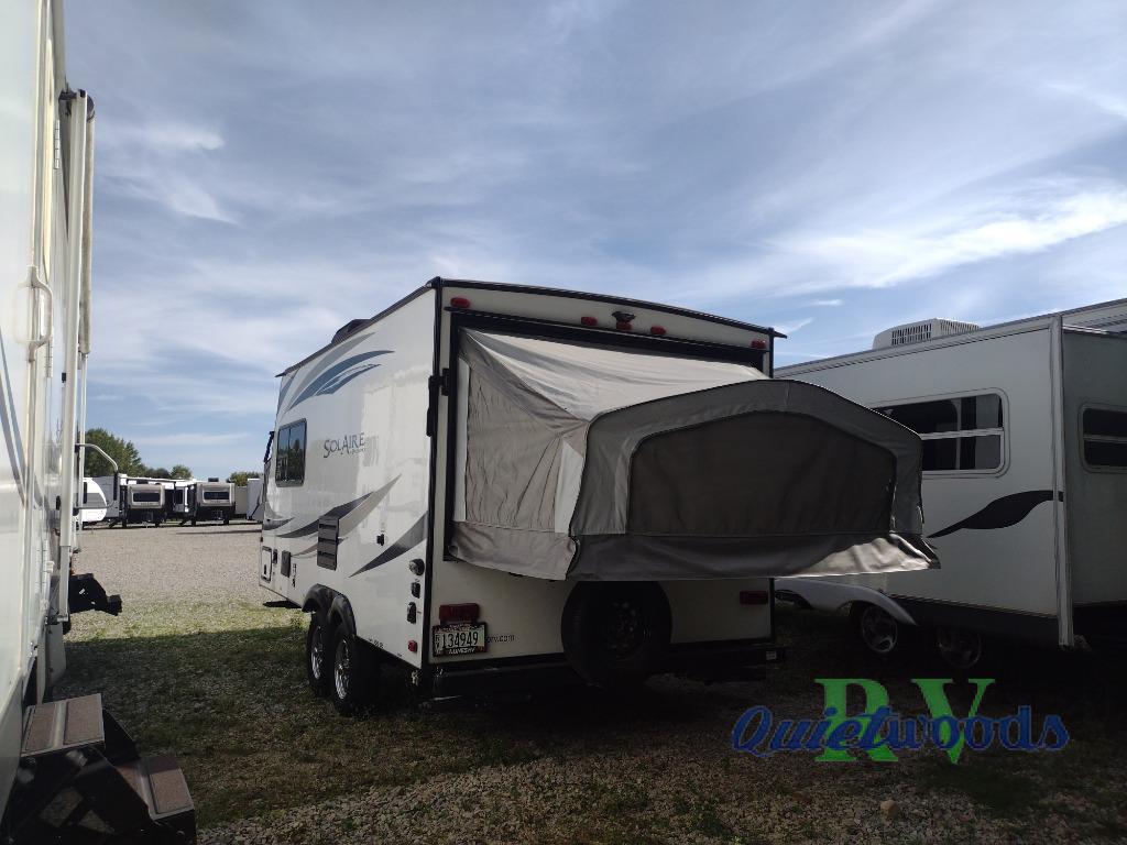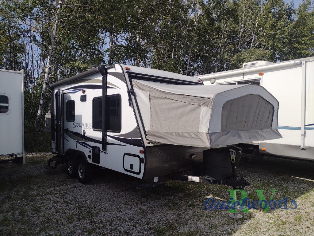 This SolAire Expandable is a wonderful addition to any family that enjoys an outdoor adventure. Because of the sofa sleeper, booth dinette, and two queen tent beds, you won't have to worry about where you will lay your head each night while traveling in this trailer since it can comfortably sleep seven adults. You also won't have to worry about where you will store all of those leftovers from dinner because this trailer includes an 8 cubic foot refrigerator, and the tile-look flooring throughout this trailer is what gives it that home-like feeling.