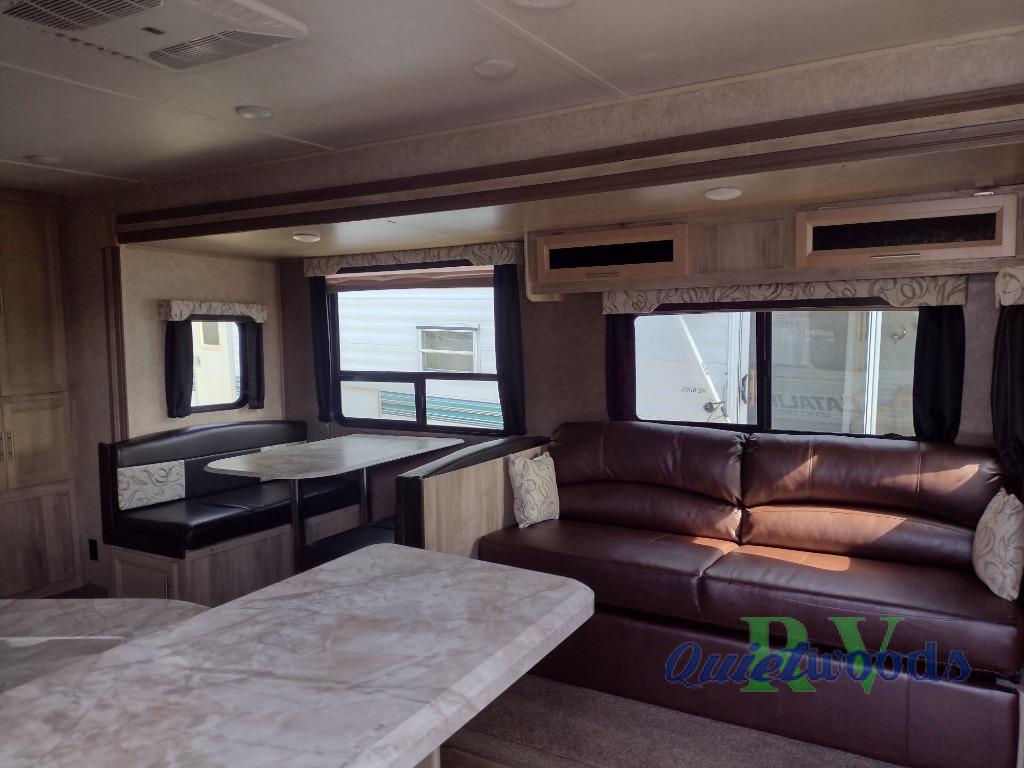 Your family will enjoy spending the weekend with you in this Catalina Legacy Edition travel trailer! You'll find a 32" flat screen TV in the living area so that you don't have to miss out on watching your favorite sports team while you're gone, and the breakfast bar with stools is a neat feature that allows you to sit down and chat with the chef who is preparing dinner on the three-burner range. The wardrobe/pantry will be where you find all of the spices and canned goods that you stocked up on before the trip.