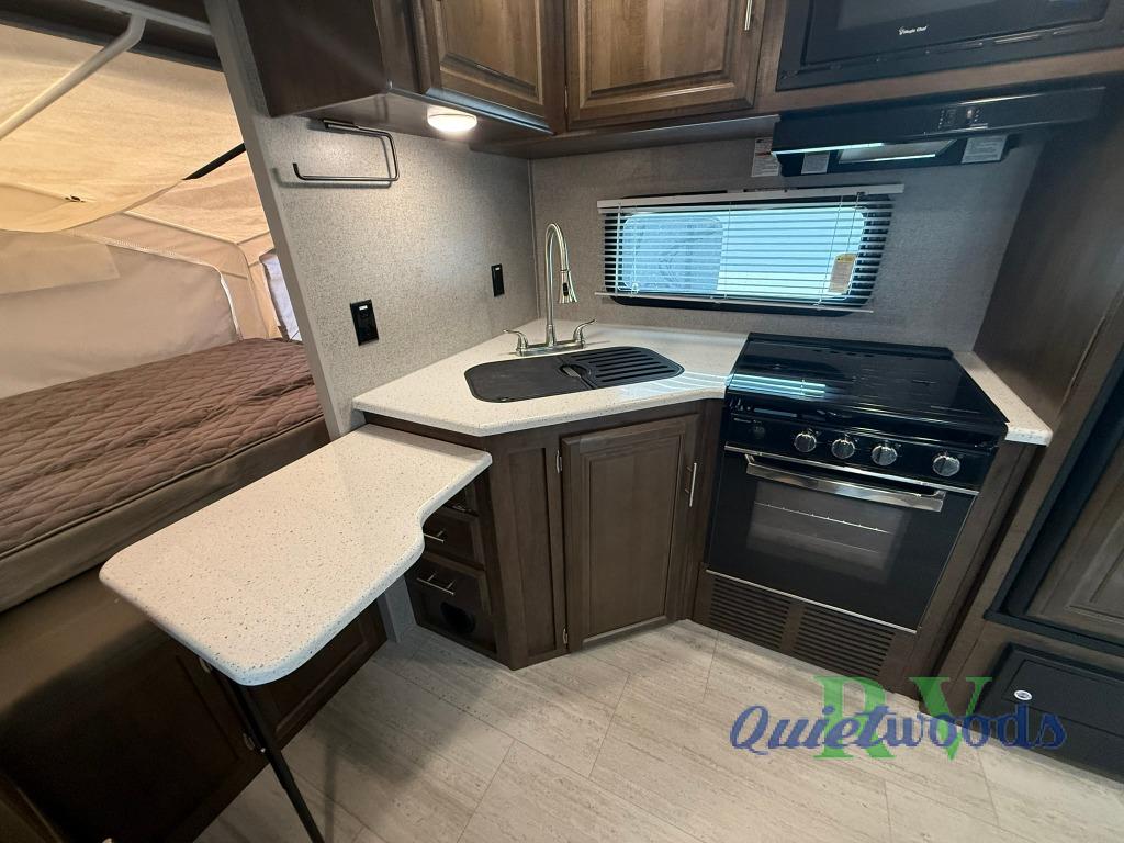 For an expandable with the perfect balance of comfort and convenience, choose the Forest River Rockwood Roo campers. Each model includes solid surface kitchen countertops, a multi zone stereo with DVD/CD/AM/FM and Bluetooth control, a double door auto gas/electric refrigerator, plus a bathroom skylight just to name a few at-home comforts. You can enjoy your time outdoors with a power awning with LED lights and the outside speakers will make your campsite the life of the party. These models are constructed with a fully aluminum frame and a radiant foil insulated underbelly, allowing you to extend your camping season with ease.