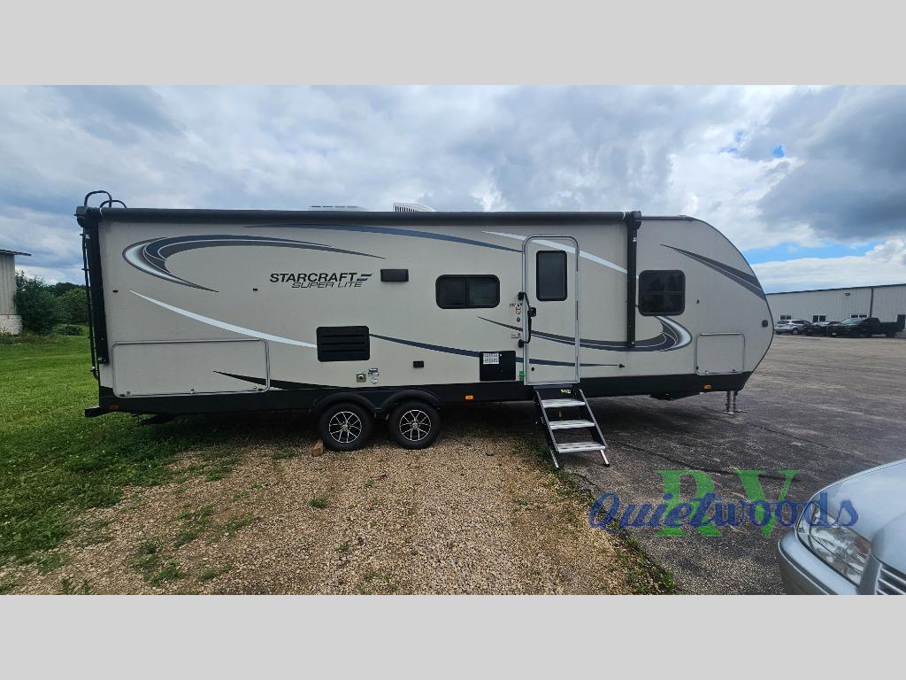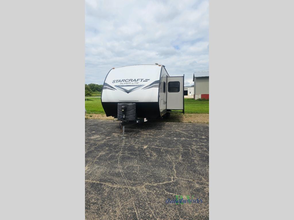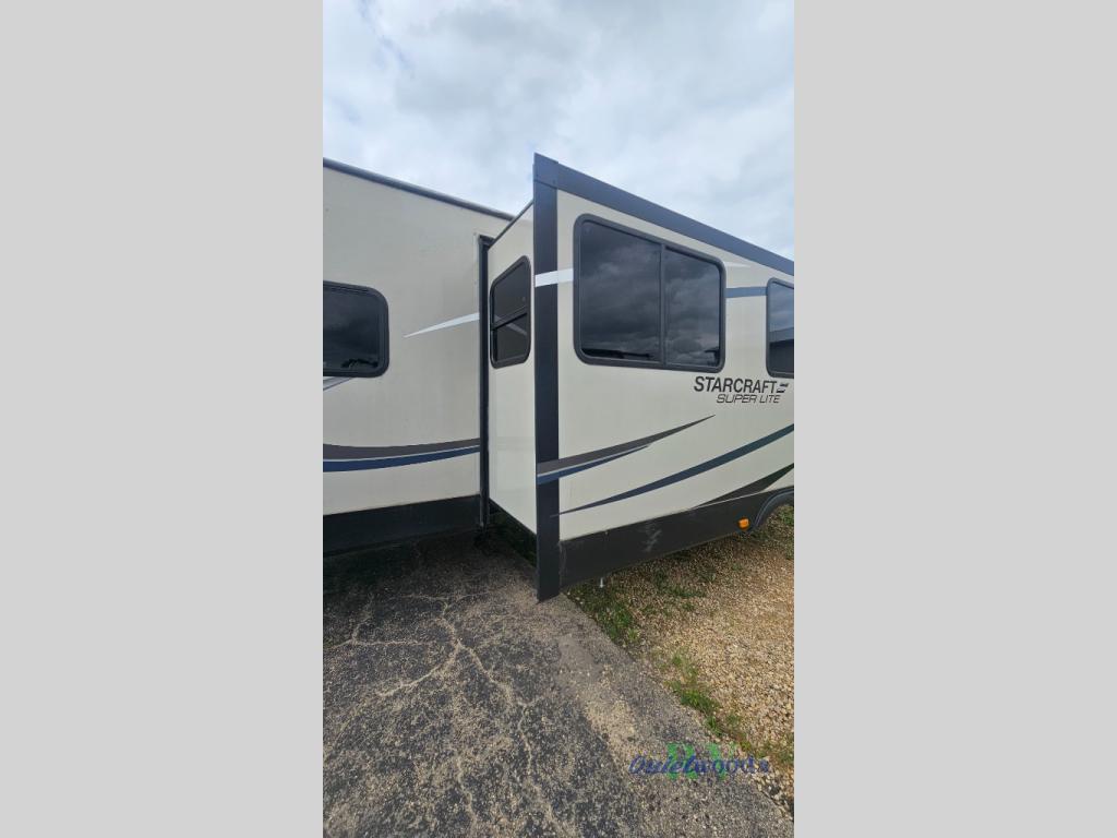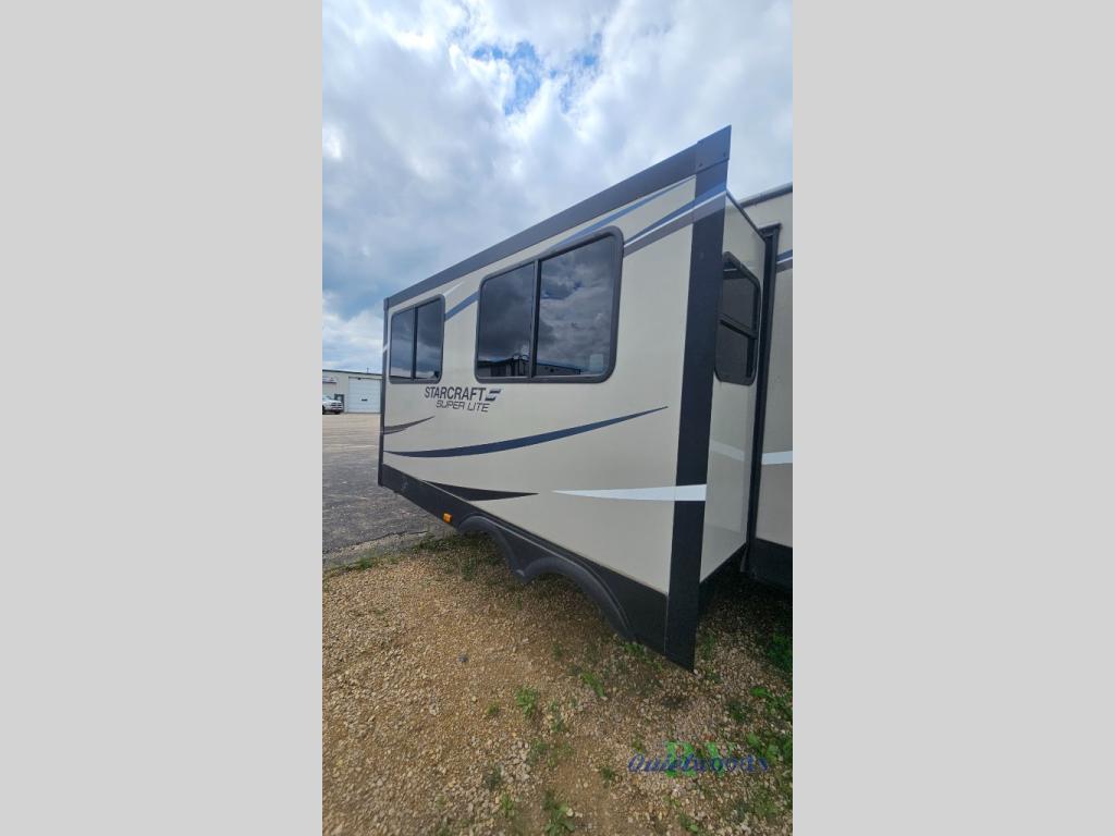Each Super Lite travel trailer by Starcraft features durable residential style flooring, kitchen sink covers, and a residential high-rise faucet with a pull-down sprayer for easy clean-up. The power awning with LED lights and speakers provide an outdoor living space and the oversized pass-through storage with lighting allows you to bring along camp gear both small and large. These models are constructed with Stonegaurd Protection and a front cap with an LED light as well as a forced air heated enclosed underbelly that will allow you to camp in any season.