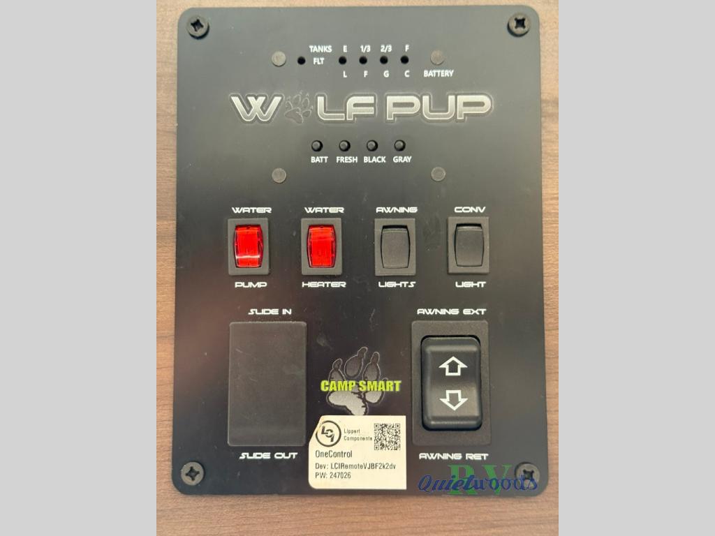You are going to love the journeys you'll take and memories you'll make with the Forest River Cherokee Wolf Pup toy hauler and travel trailer! The back-up camera system is going to make it very easy to maneuver into the campsite, and the outside shower with hot/cold water will help you clean up while you are outside playing. The stereo has interior/exterior speakers so that you can listen to your music from just about anywhere, and you even get a Cherokee Total Control app and remote control system so that you can be in charge of your trailer's functions without much effort. The Cherokee Wolf Pup has a seamless roofing membrane with heat reflectivity, and the outside storage door is going to allow you to bring a little extra gear.
