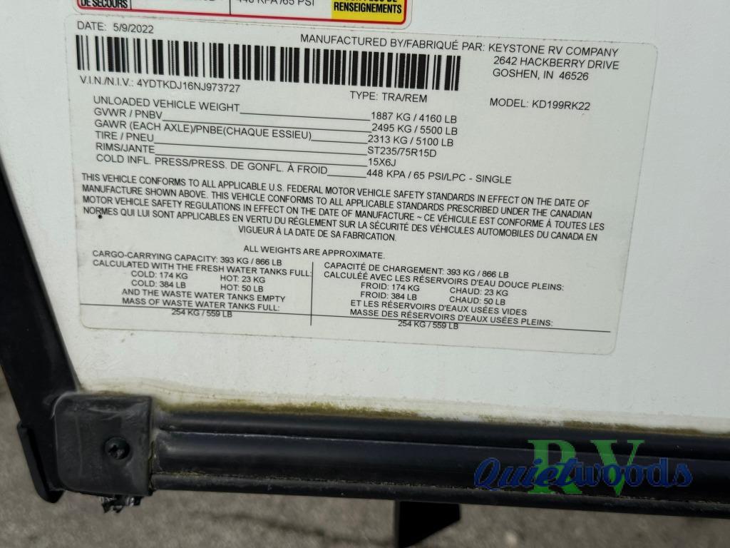 Dutchmen Kodiak Cub travel trailer 199RK highlights: