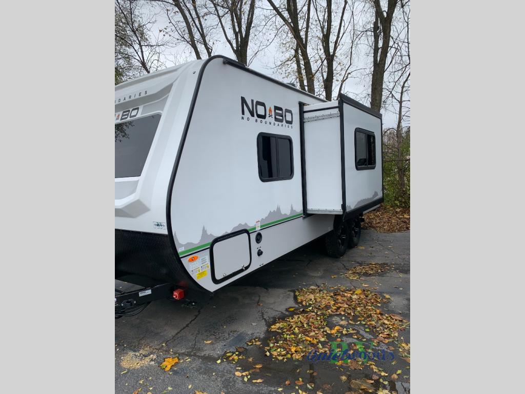 The No Boundaries travel trailers and toy haulers by Forest River are easy to tow by a four or six-cylinder vehicle because they range in weights from under 2,000 pounds up to 5,000 pounds. Depending on the model you choose, you will find independent torsion suspension with industry-leading cargo capacity, six-lug satin black aluminum wheels and All-Terrain tires, frame-mounted walkable steel fenders, a laminated Azdel exterior, a Cold Weather package, and a fully walkable 500-LB roof with PVC roofing membrane. The interior offers an exclusive central vacuum system plus much more! You will find a NOBO in a 10 Series, 16 Series or a 19 Series to fit your extreme lifestyle, so make your selection today!