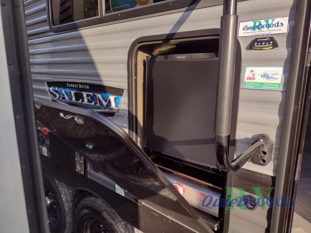 Enjoy years and years of memories with any one of these Forest River Salem travel trailers! They are built with a one piece, SuperFlex roof, a powder coated I-beam frame, and an aerodynamic front radius profile for an easier tow. The triple seal slide out system prevents water from seeping inside and keeps it outside where it belongs. The Salem Best In Class Value Package includes upgraded designer furniture, seamless countertops with no T-mold, and two zone residential soundbars with FM, Bluetooth, HDMI and USB. You will also appreciate the heated and enclosed Accessi-Belly with removable underbelly panels, the power tongue jack with an LED light, the designated CPAP storage, plus many more convenient features. Come see all of the other new features today!