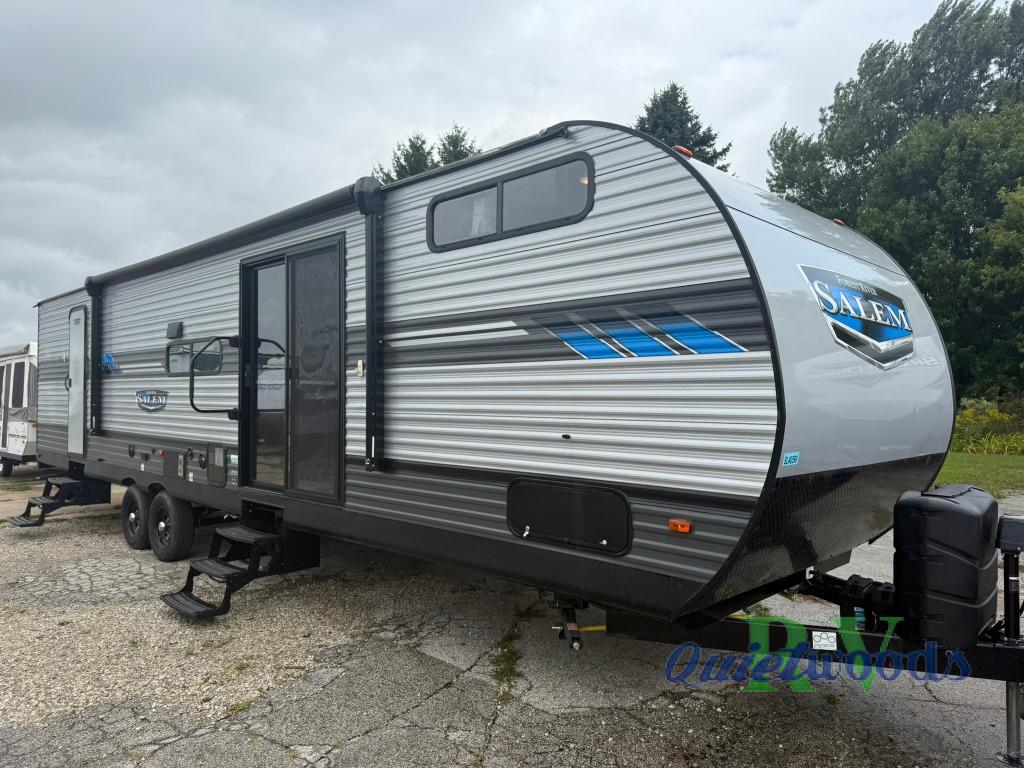 Enjoy years and years of memories with any one of these Forest River Midwest Salem travel trailers! They are built with a one piece, SuperFlex roof, a powder coated I-beam frame, and an aerodynamic front radius profile for an easier tow. The triple seal slide out system prevents water from seeping inside and keeps it outside where it belongs. The Salem Best In Class Value Package includes upgraded designer furniture, seamless countertops with no T-mold, and two zone residential soundbars with FM, Bluetooth, HDMI and USB. You will also appreciate the heated and enclosed Accessi-Belly with removable underbelly panels, the power tongue jack with an LED light, the designated CPAP storage, plus many more convenient features. Come see all of the other new features today!