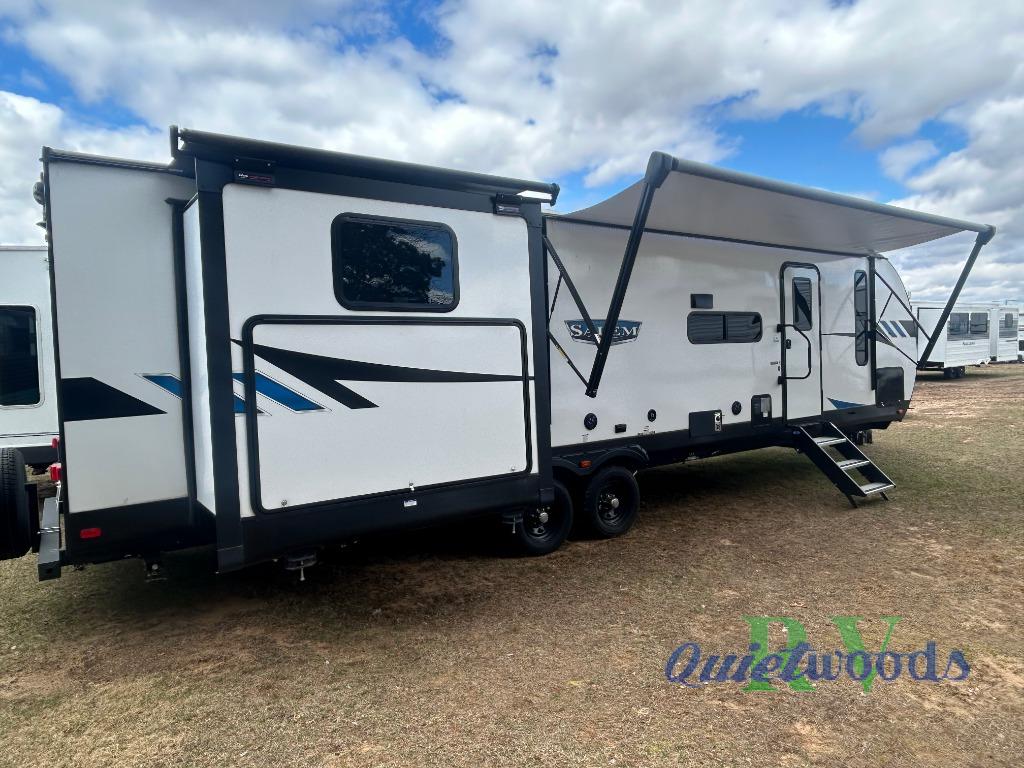 Enjoy years and years of memories with any one of these Forest River Salem travel trailers! They are built with a one piece, SuperFlex roof, a powder coated I-beam frame, and an aerodynamic front radius profile for an easier tow. The triple seal slide out system prevents water from seeping inside and keeps it outside where it belongs. The Salem Best In Class Value Package includes upgraded designer furniture, seamless countertops with no T-mold, and two zone residential soundbars with FM, Bluetooth, HDMI and USB. You will also appreciate the heated and enclosed Accessi-Belly with removable underbelly panels, the power tongue jack with an LED light, the designated CPAP storage. Some new upgraded features include: kitchen backsplash, fireplaces with mirror fronts, bedroom bedding, 12V refrigerator, now with glass doors, and so much more!