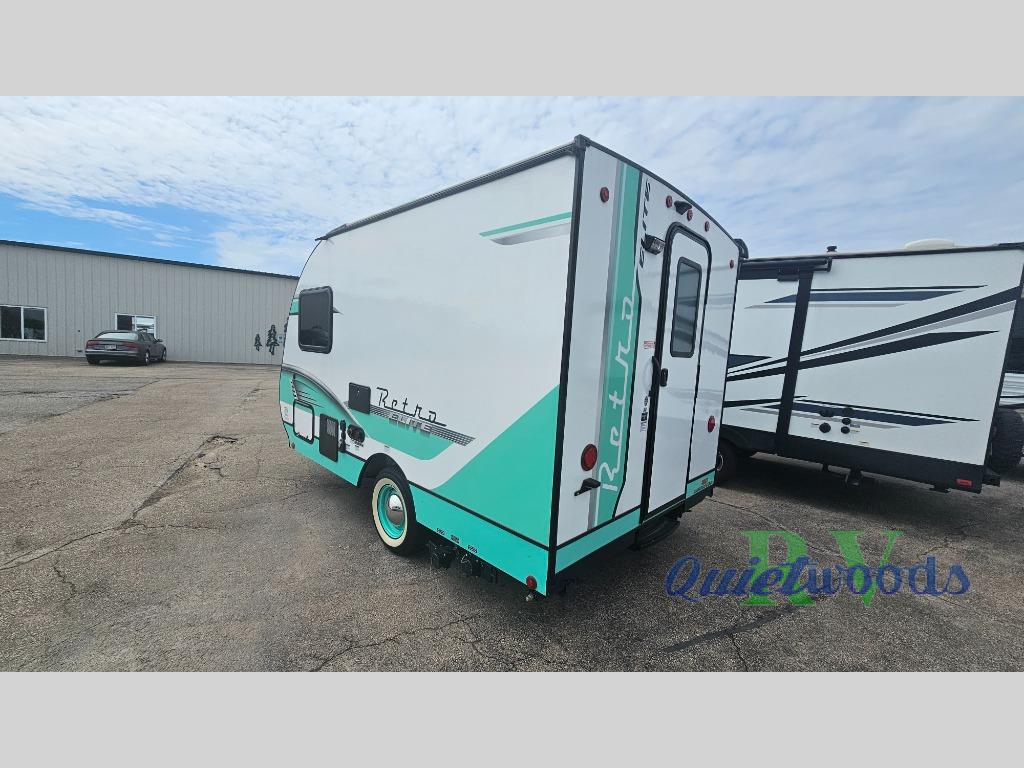 Each Retro travel trailer by Riverside RV will take you back in time with its vintage look, but will still impress you with its modern comforts. The double welded all-aluminum cage and powder coated chassis provide durability, along with the PVC roof membrane and diamond plate rock guard. You'll enjoy indoor and outdoor speakers, USB ports for your electronics, plus an AM/FM/Bluetooth stereo to play your favorite tunes. Each model also includes front and rear stabilizer jacks, electric brakes, a high speed roof vent, plus a 13,500 A/C to keep you cool during the hot summer camping months.